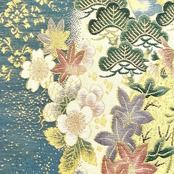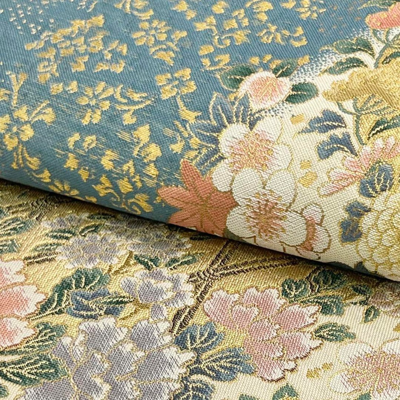 袋帯 竹垣に四季の花模様 船 金糸 藍砥茶色 O-4140
