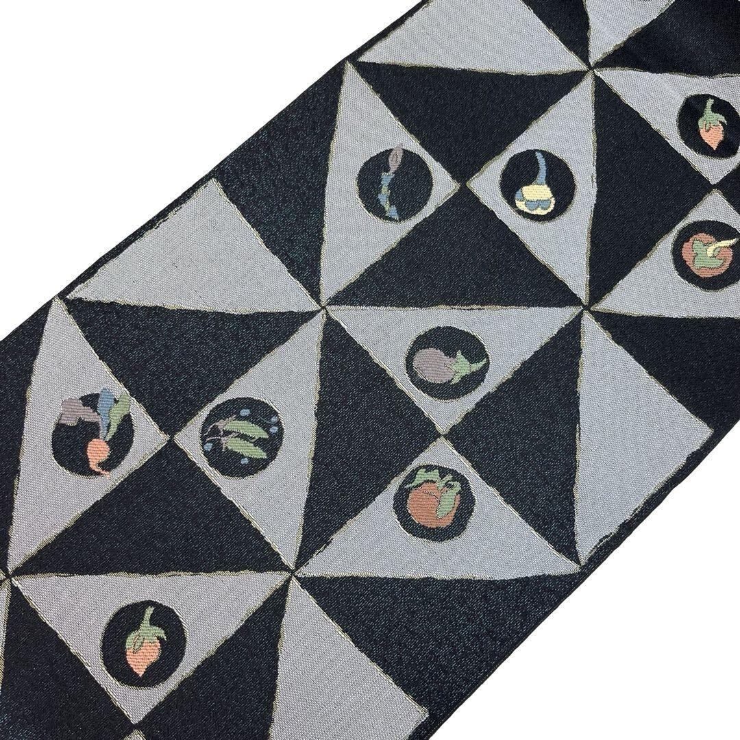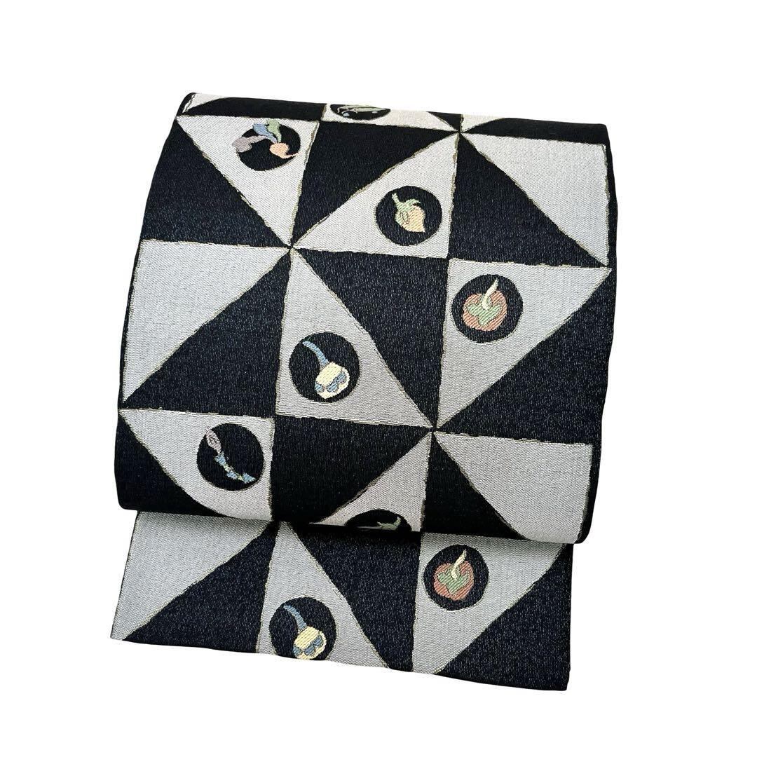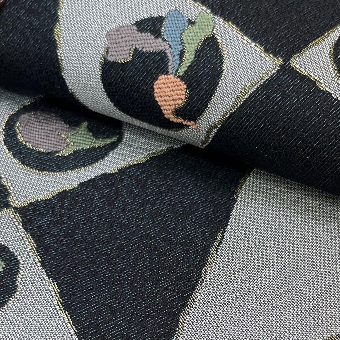 袋帯 風車模様 野菜柄 紺鉄色 ガード加工 O-4146 着物 きもの kimono 和服 和装 中古 リサイクル着物 【送料無料】