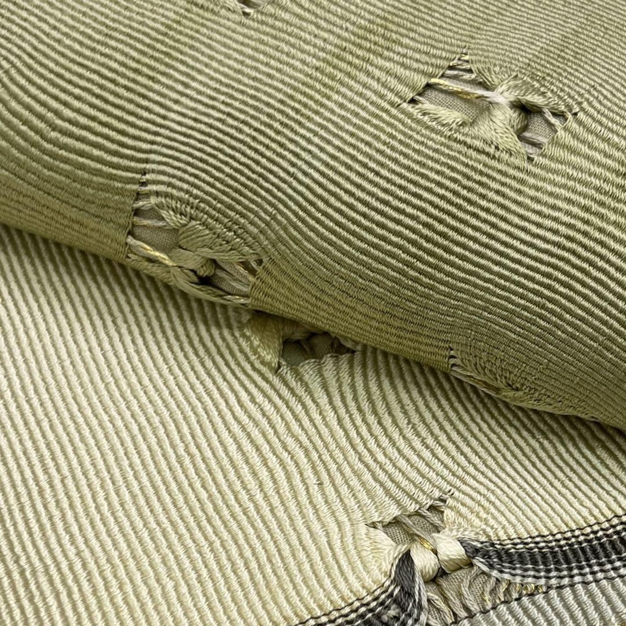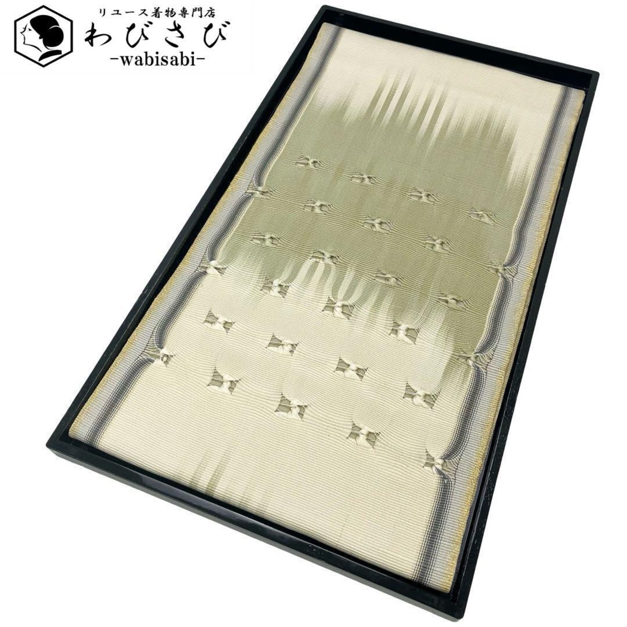裏柳色ベースの二色の上品なお色味に組錦の美しい織模様がデザインされた素敵な柄裄のお品でございます。