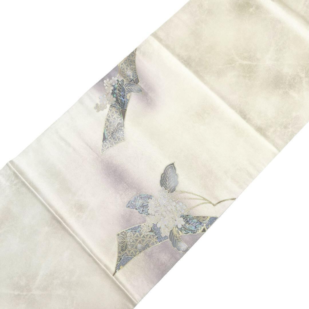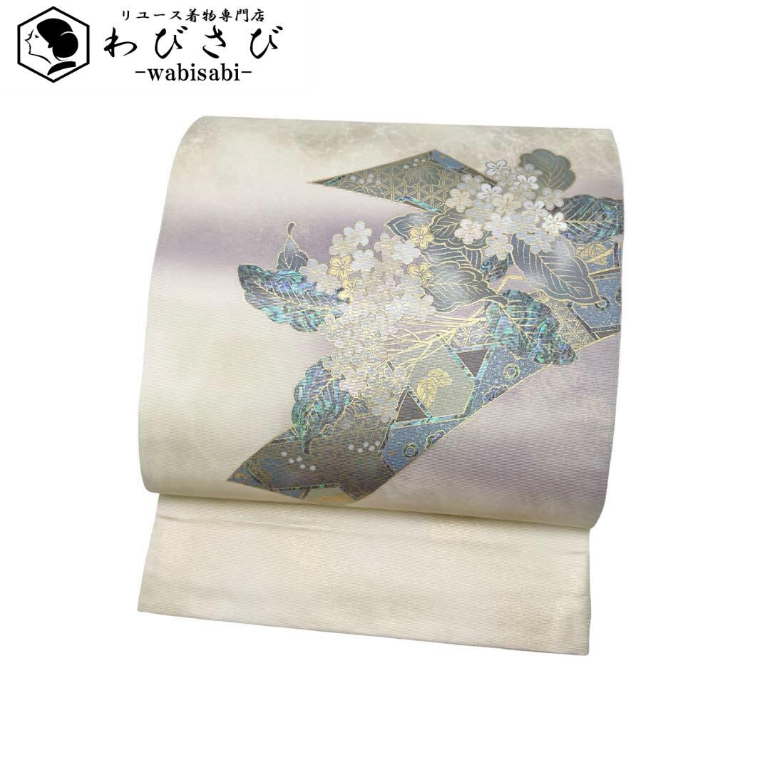 袋帯 本加賀友禅 宮野勇造 螺鈿 美しい花模様 鳥の子色 金彩 O-4143 着物 きもの kimono 和服 和装 中古 リサイクル着物 【送料無料】