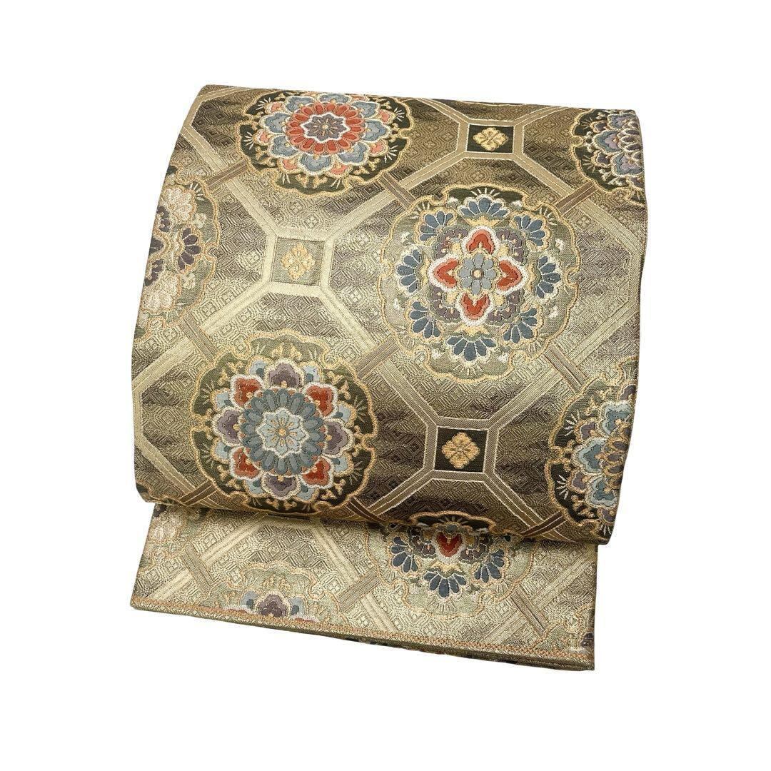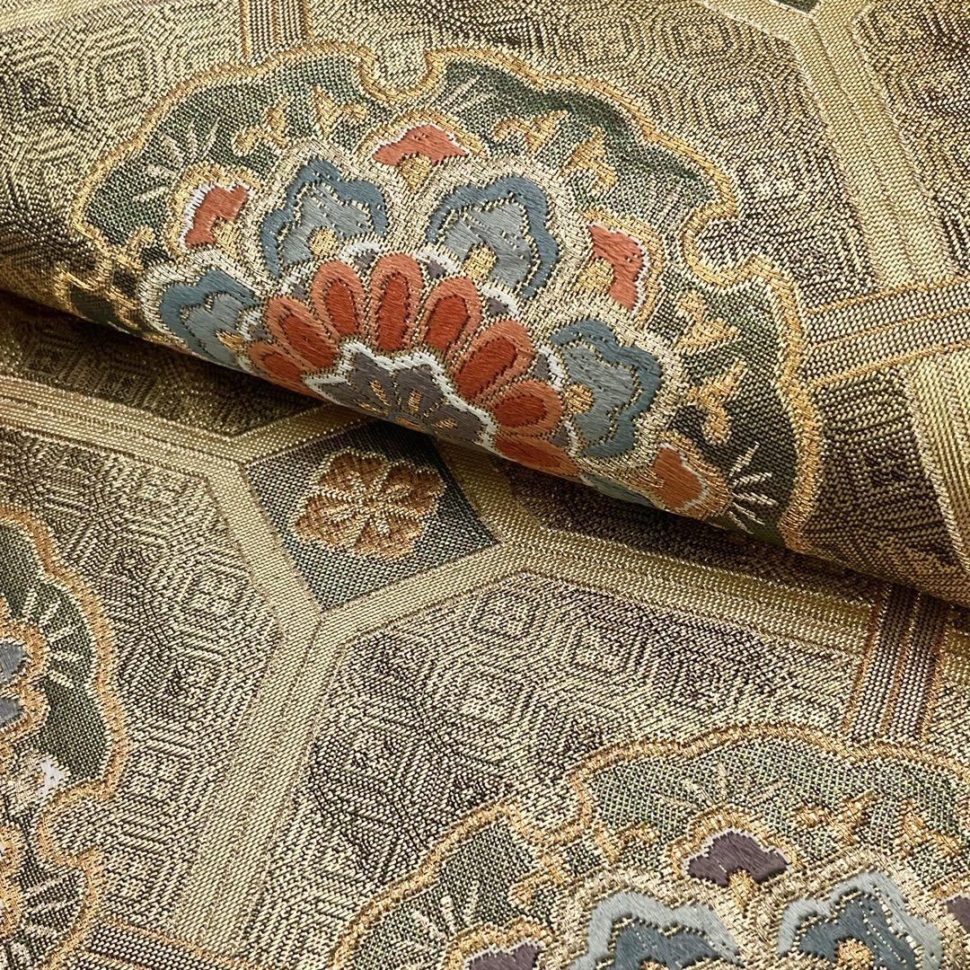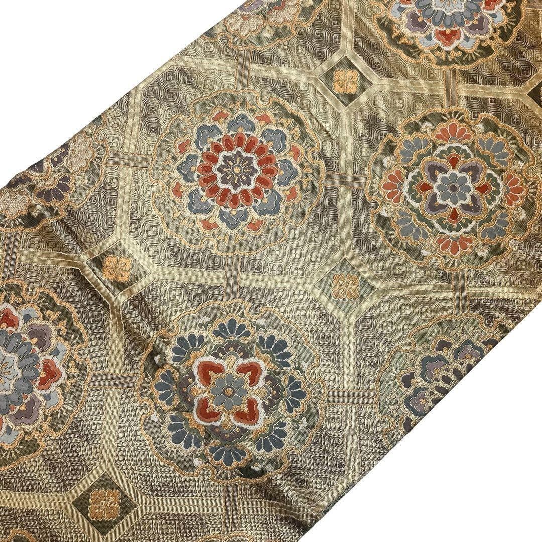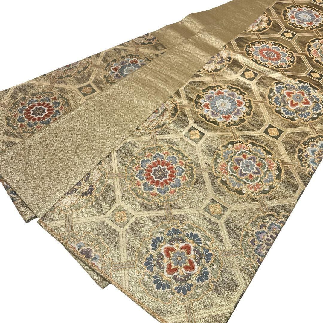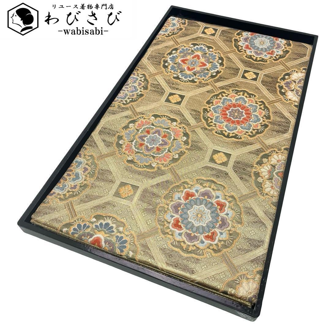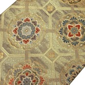雪輪佐賀華文と題された雪輪に美しい華柄模様がデザインされた金色ベースの素敵な柄行のお品でございます。