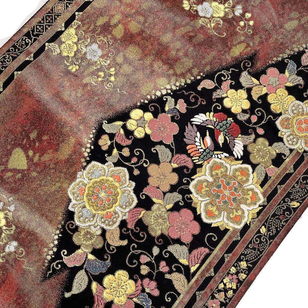 袋帯 向かい鳥に華柄模様 金銀糸 海老茶色 フォーマル O-4159