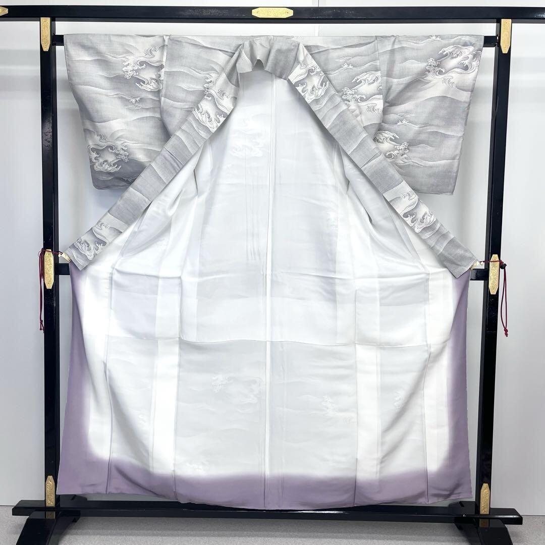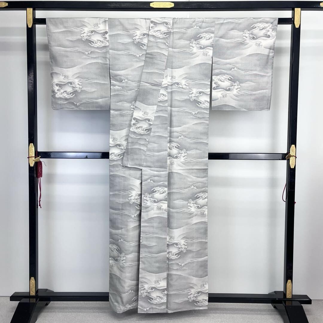 細かな織りのリアルな波模様がデザインされた白泥染めの美しい素敵な柄裄のお品でございます。