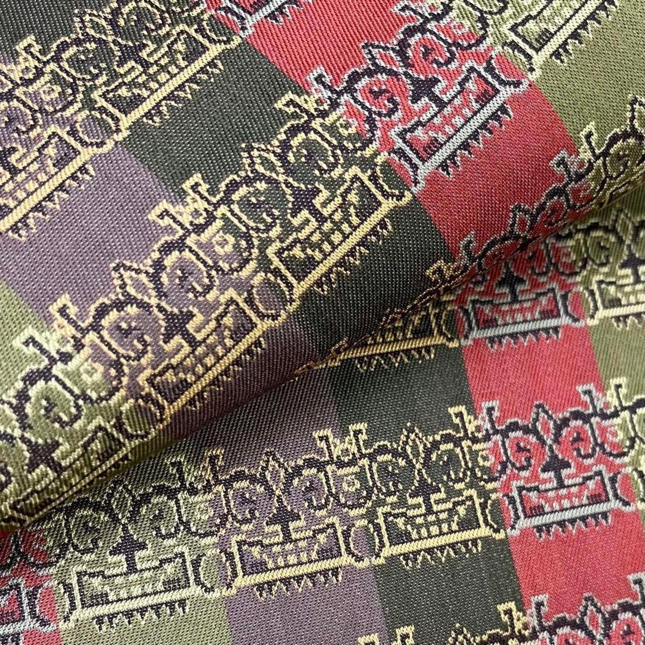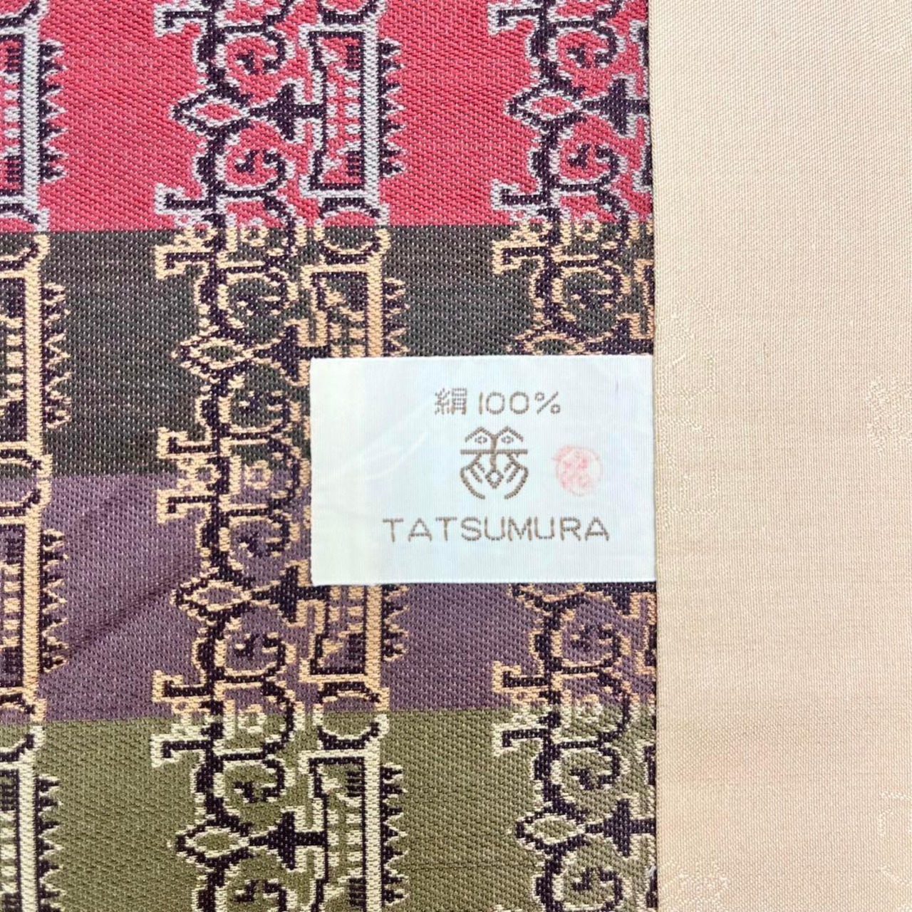 出帛紗、獅噛文長斑錦、縦柄縞模様に織模様がデザインされた素敵な柄裄のお品でございます。