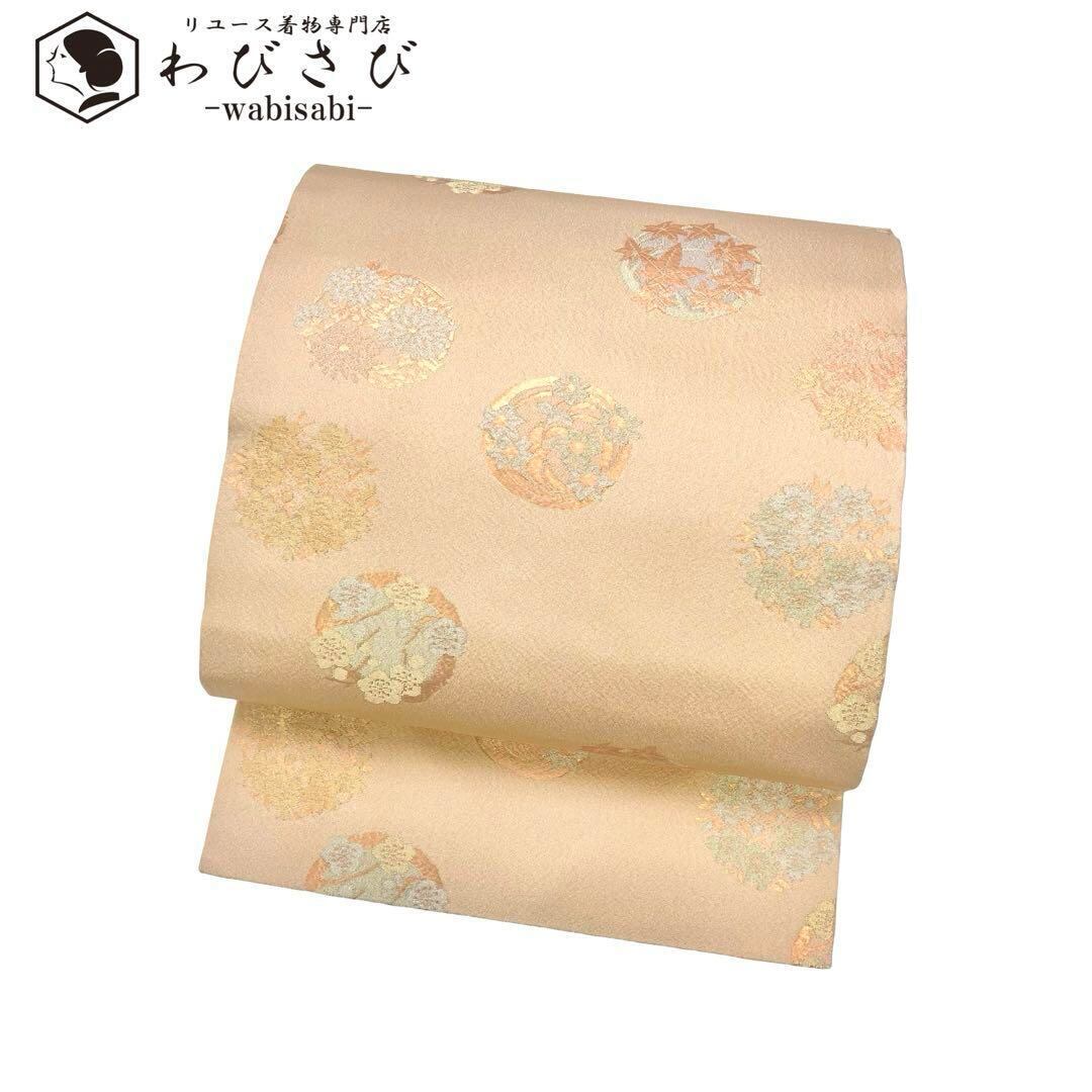 名古屋帯 丸に花模様 梅 菊 紅葉 金通し 胡桃色 O-4173