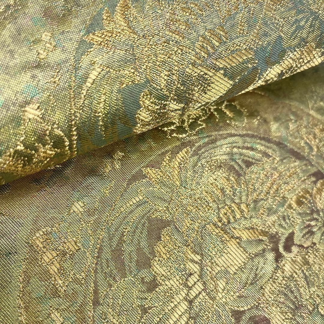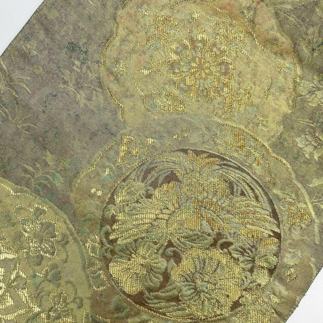 研出青銅箔と題された金色ベースの煌びやかなお色に美しい華柄模様がデザインされた素敵な柄裄のお品でございます。