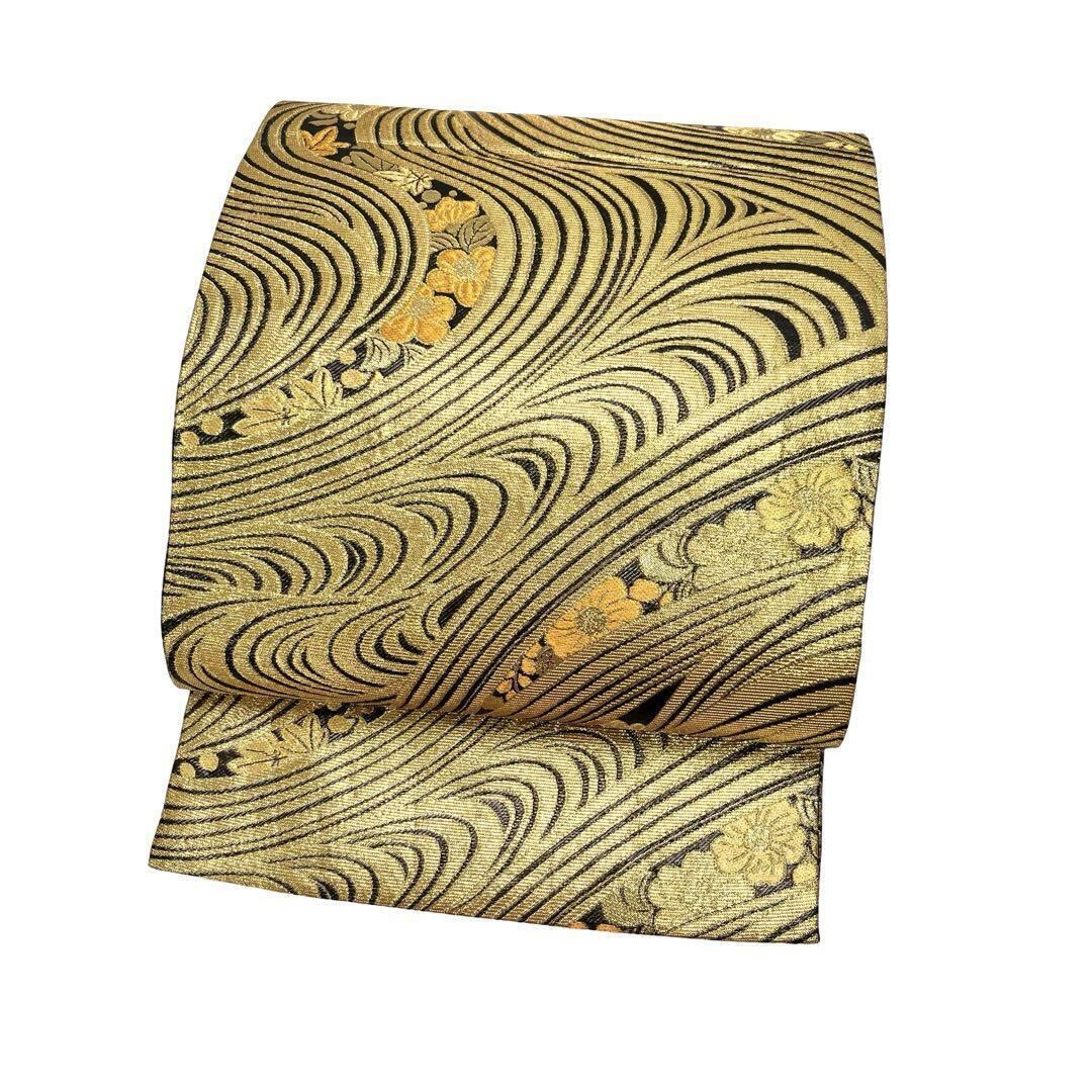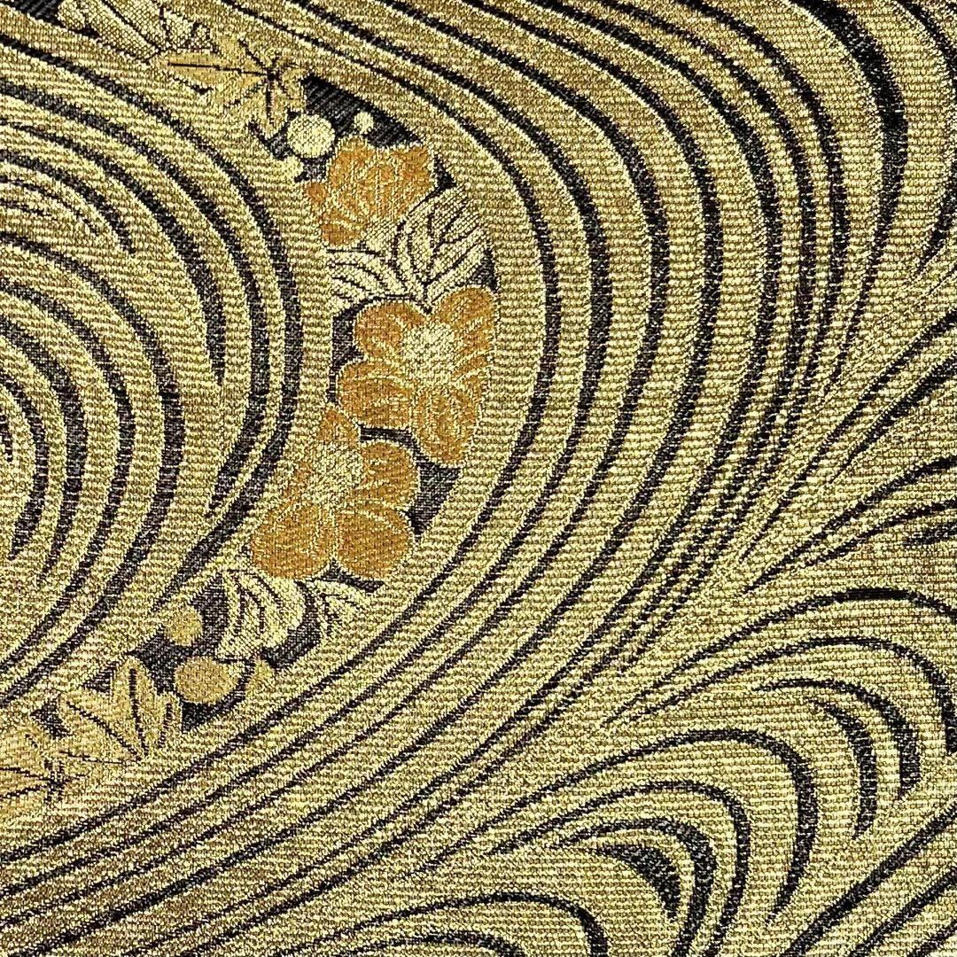 金色ベースの煌びやかなお色味、流水に辻が花模様がデザインされた素敵な柄裄のお品でございます。