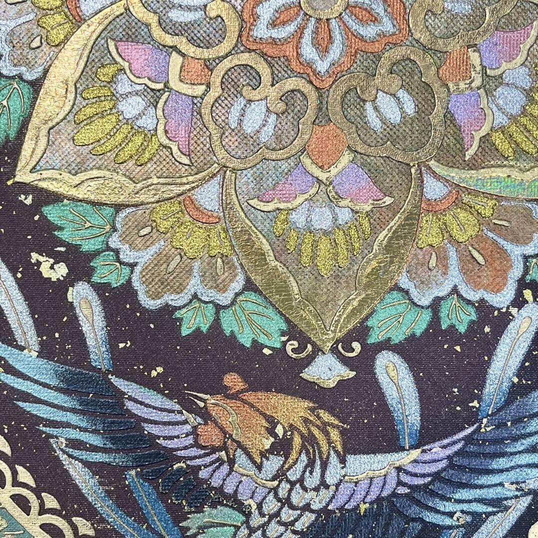 金銀彩の煌びやかで美しい華柄模様に鳳凰の柄裄がデザインされた素敵な柄裄のお品でございます。
