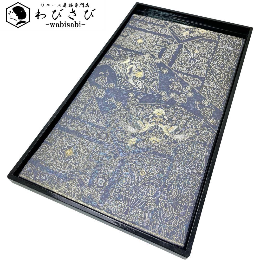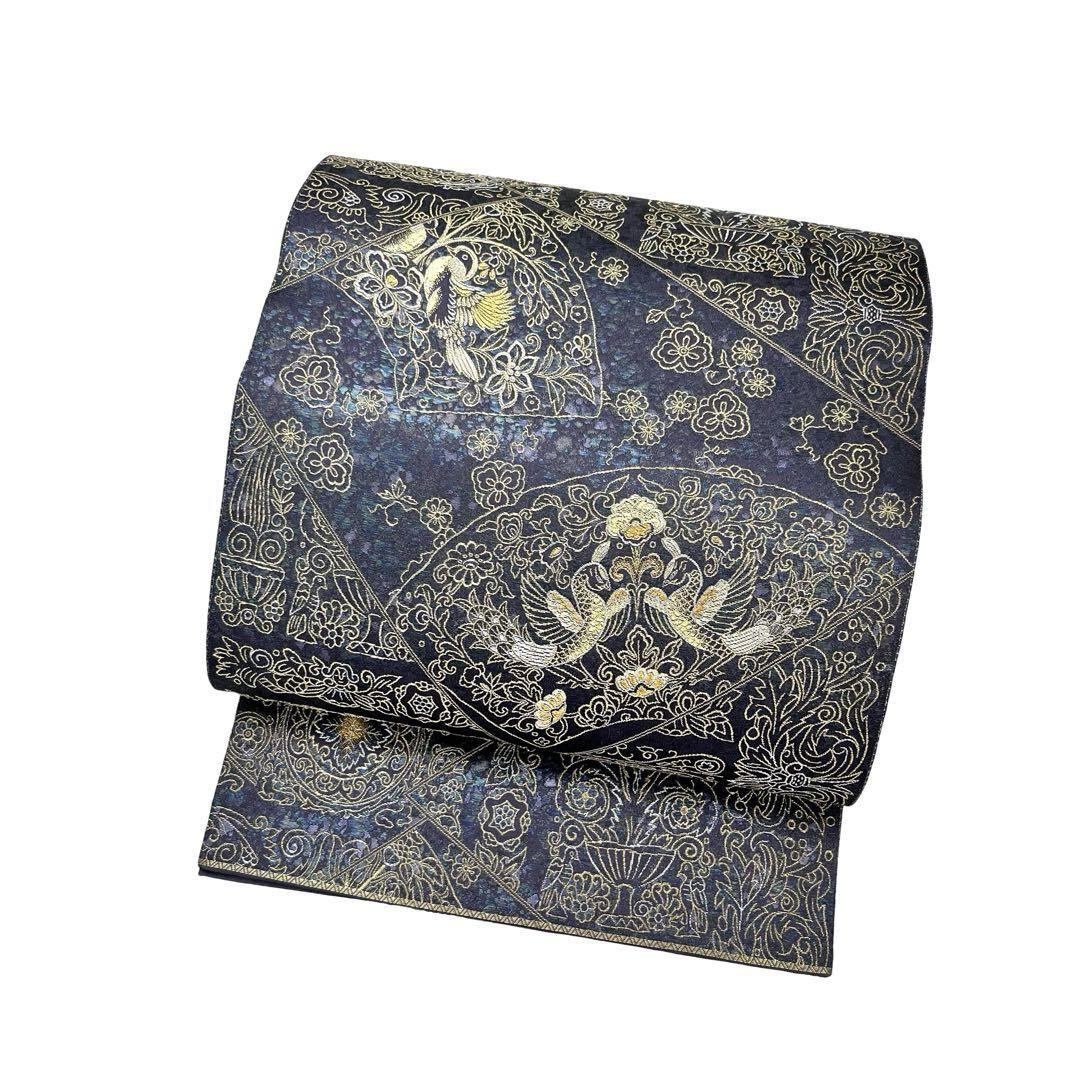袋帯 九百錦 昭倉苑 地紙に花模様 鳥 金銀糸 紫鼠色 O-4160 着物 きもの kimono 和服 和装 中古 リサイクル着物 【送料無料】