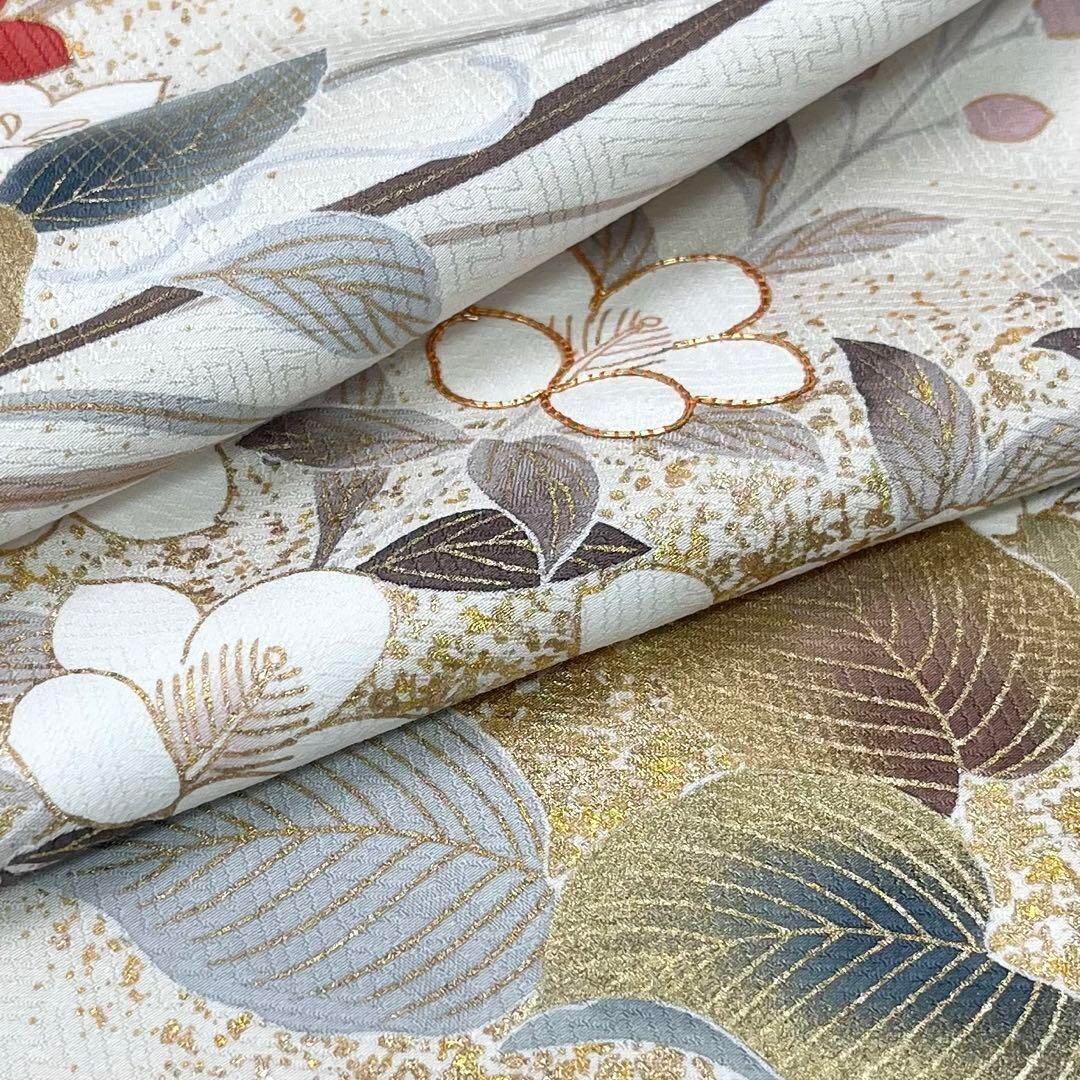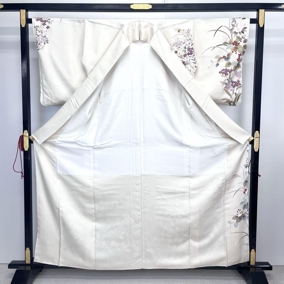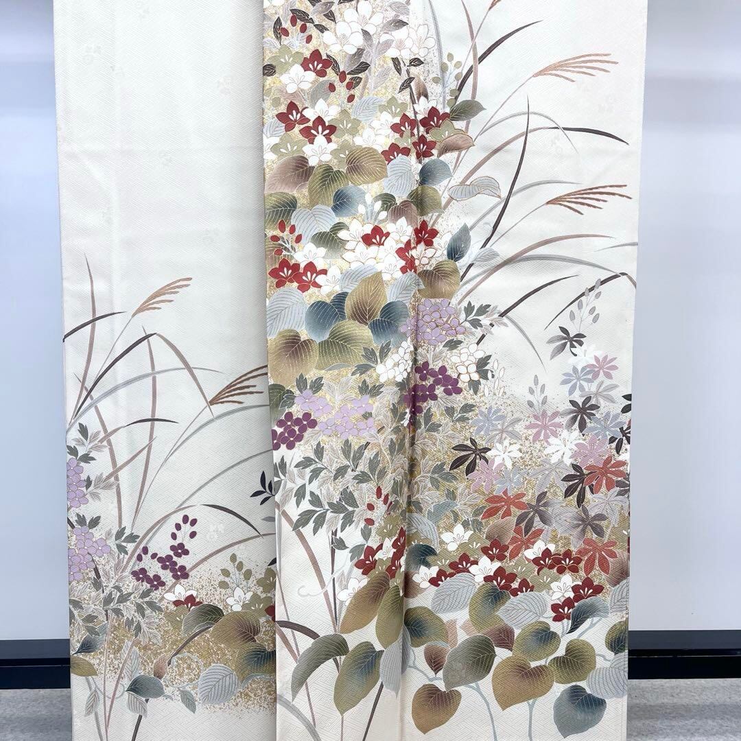 訪問着 草花模様 芒 桔梗 乳白色 金駒刺繍 金彩 乳白色 K-4018