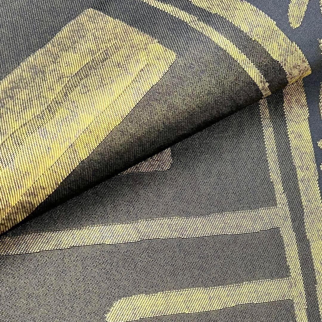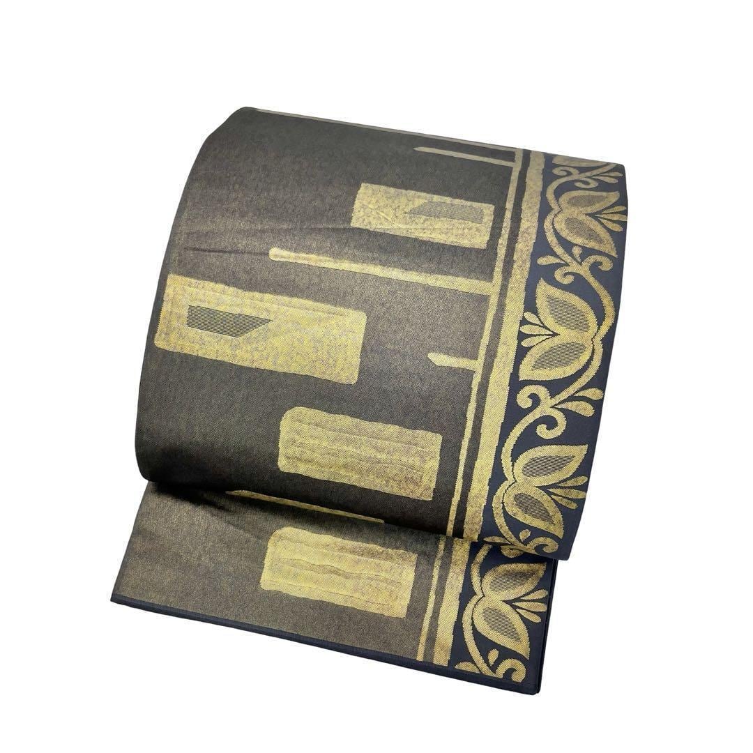 鋼色の落ち着きのあるお色味に花唐草模様に抽象柄がデザインされた素敵な柄裄のお品でございます。