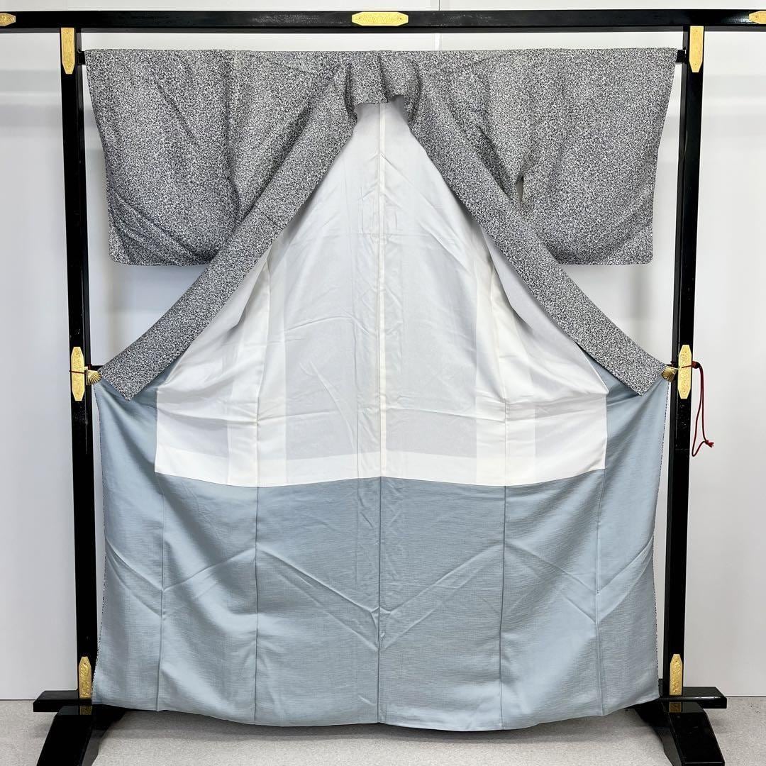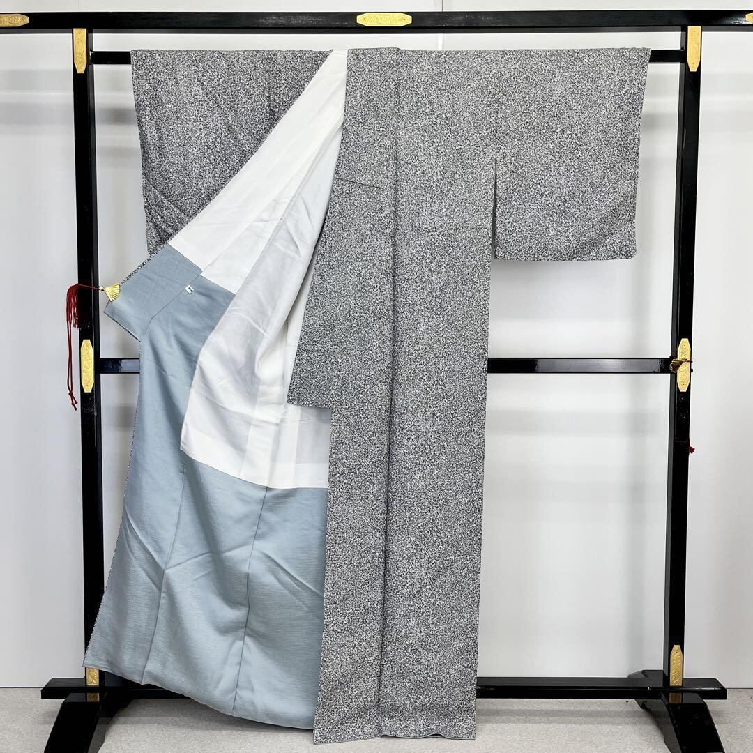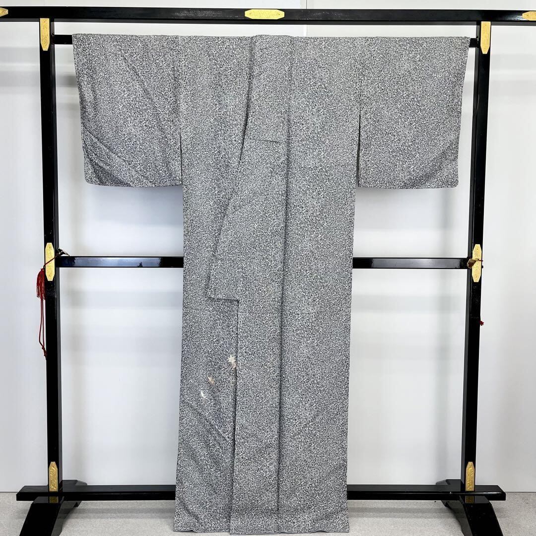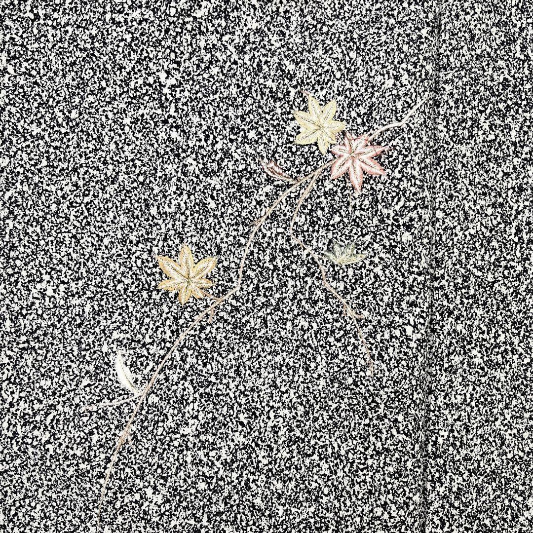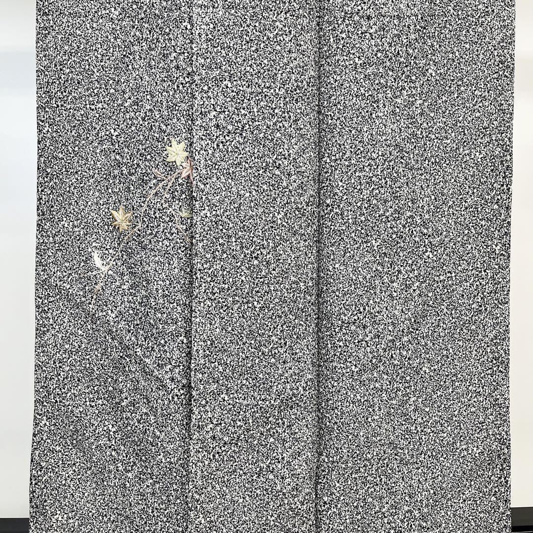 モノトーンの叩き染、右前身頃にさり気なく刺繍の紅葉柄がポイントでデザインされたモダンな雰囲気の素敵なお品でございます。