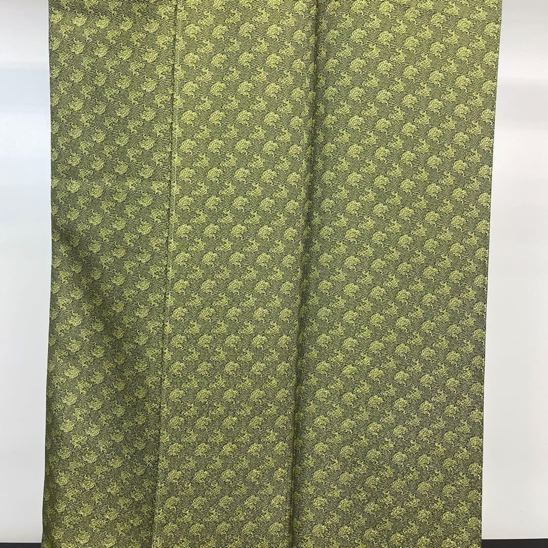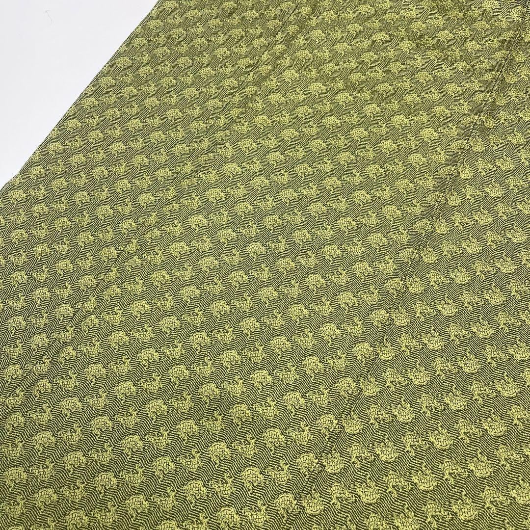 比金襖色の上質な縮緬に荒磯の柄裄がデザインされた素敵なお品でございます。