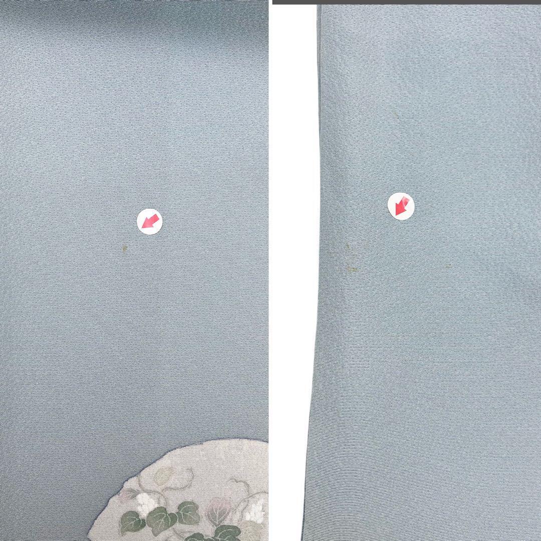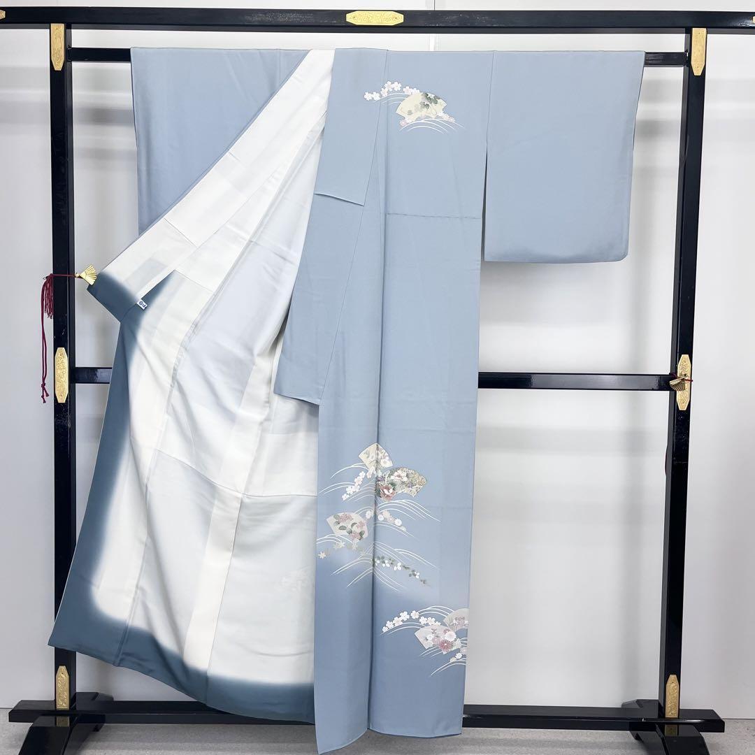付下げ 地紙に花柄模様 暈し 空色鼠 縮緬 金彩 K-4042
