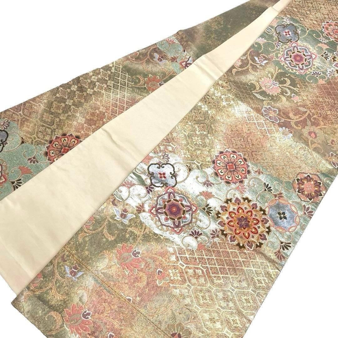 道長更紗華紋と題された金色ベースの煌びやかなお色味に美しい華柄模様がデザインされた素敵なお品でございます。