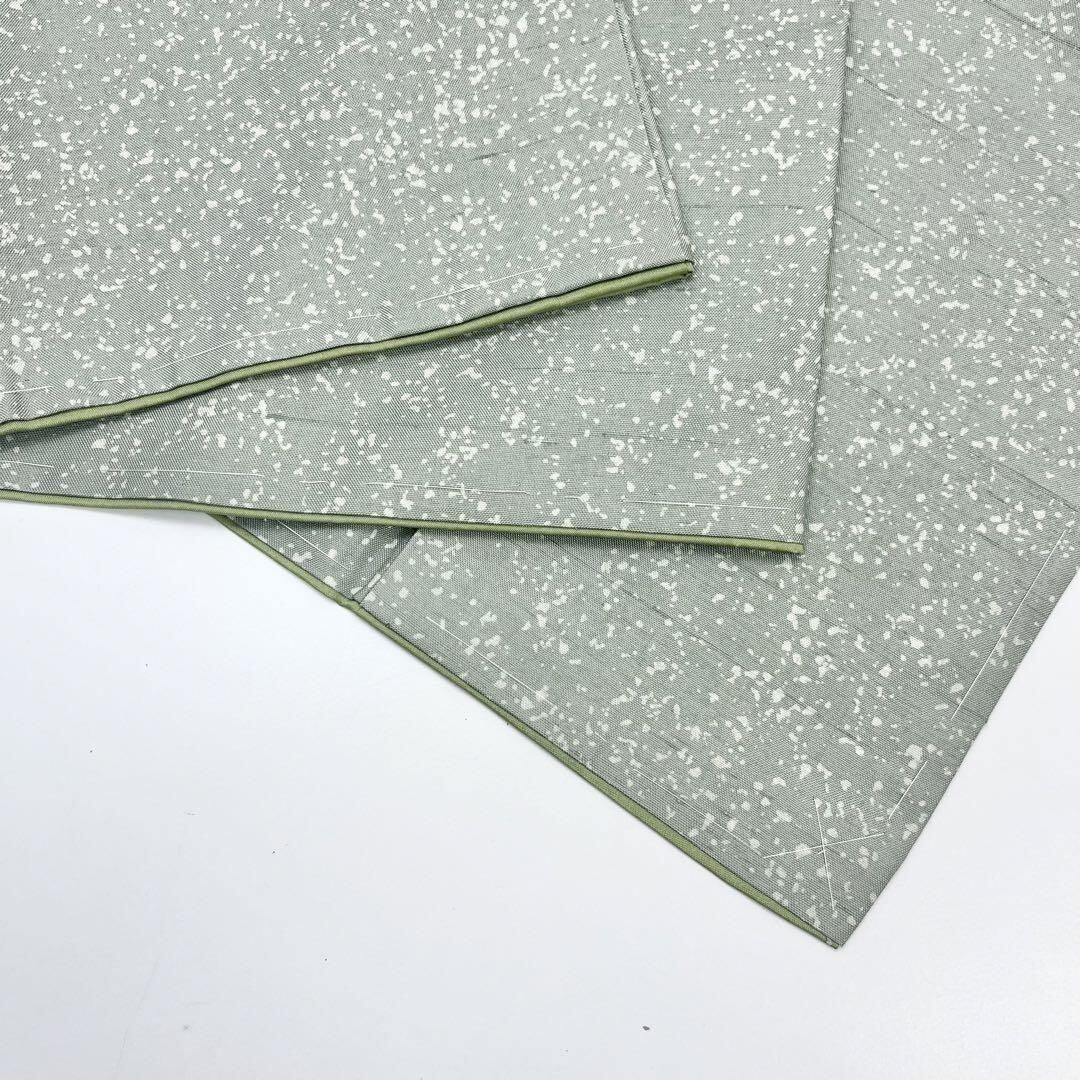 青磁色ベースの上品なお色味に叩き染の柄裄がデザインされた素敵なお品でございます。