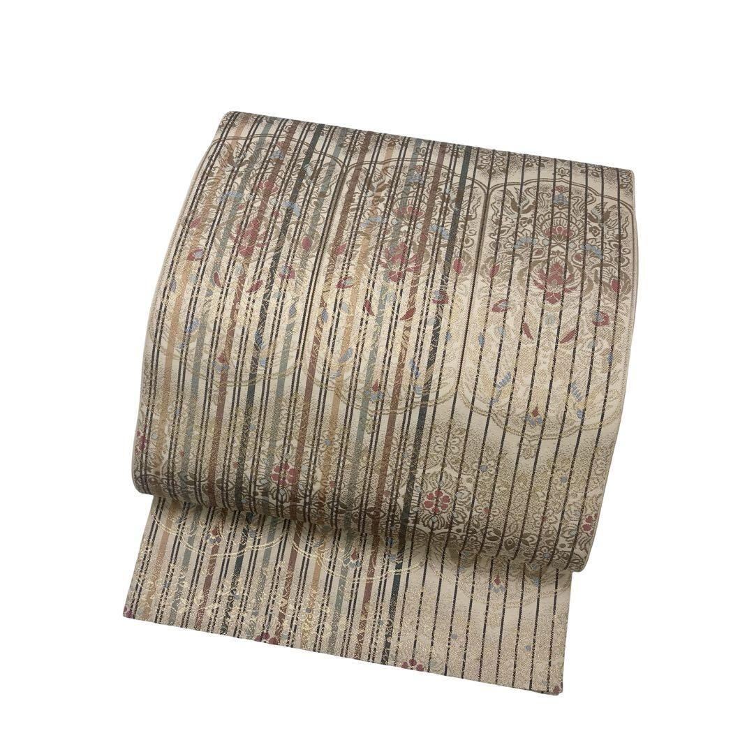 袋帯 正倉院螺鈿文様 縦縞模様 鳳凰 華柄模様 金糸 O-4200 着物 きもの kimono 和服 和装 中古 リサイクル着物 【送料無料】