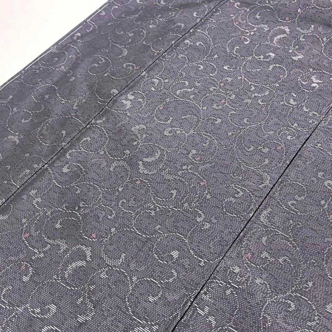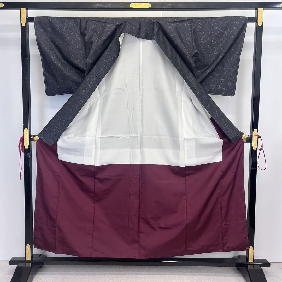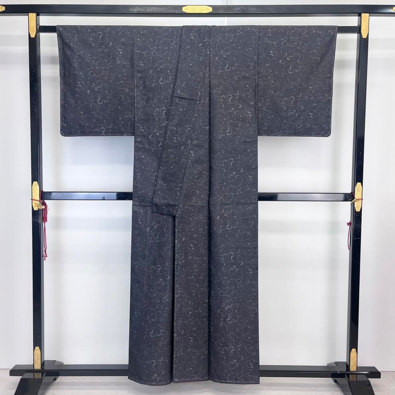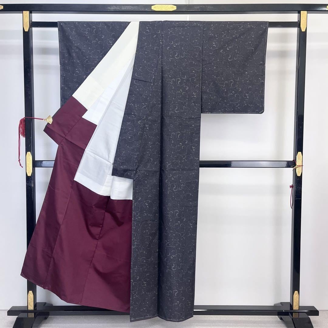 落ち着いたお色味に雰囲気の良い唐草模様の柄裄がデザインされた素敵なお品でございます。