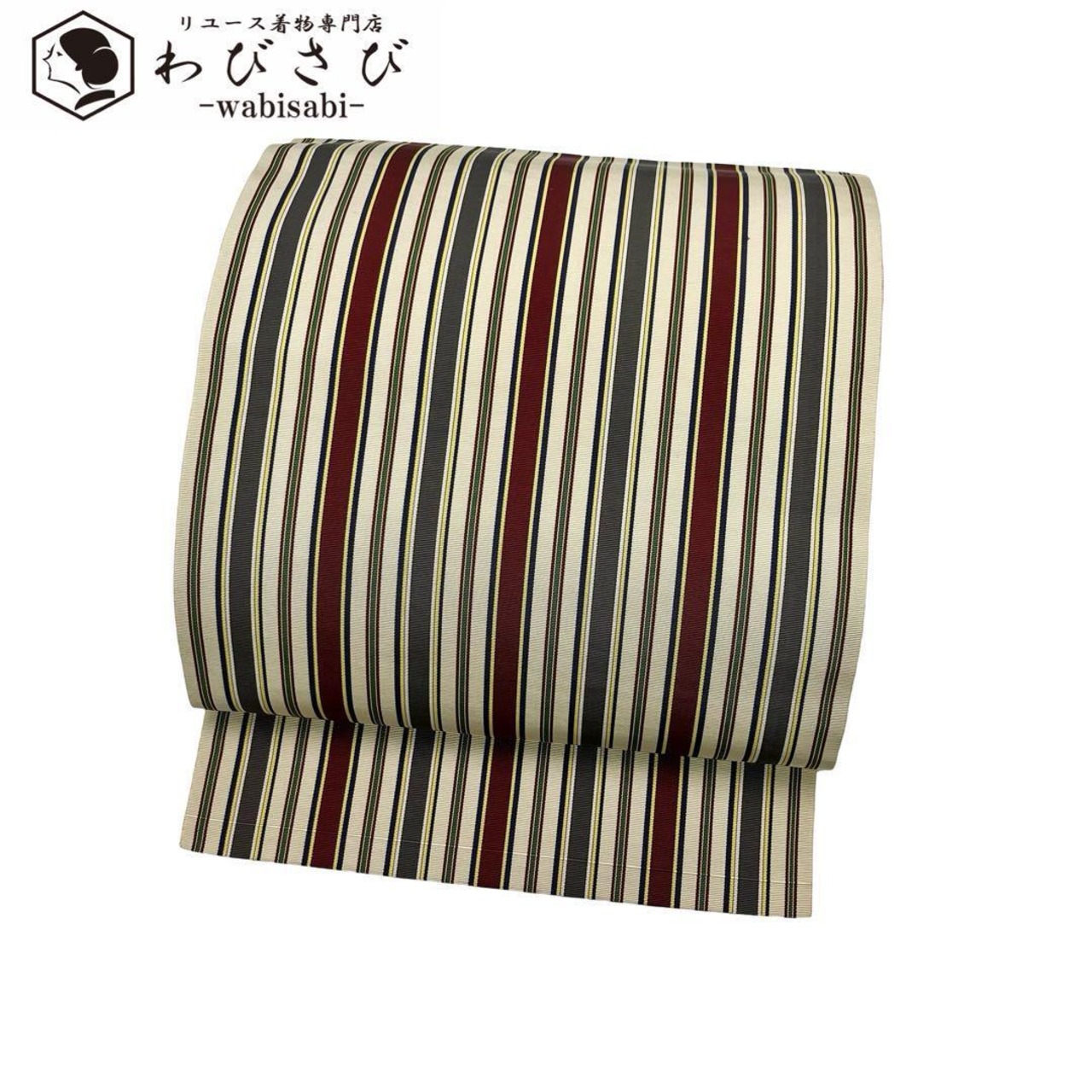 名古屋帯 本場筑前博多織 縦縞模様 生成色 O-4207