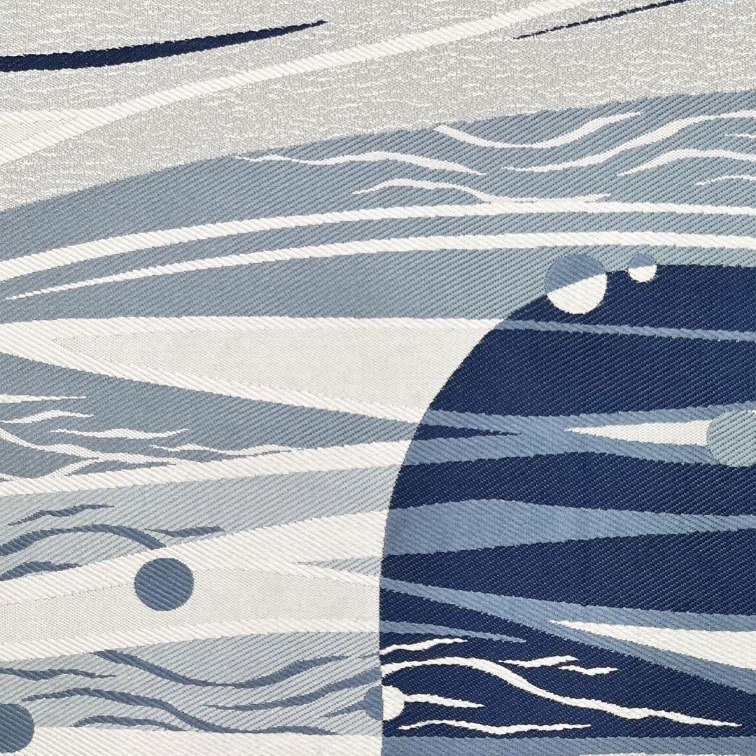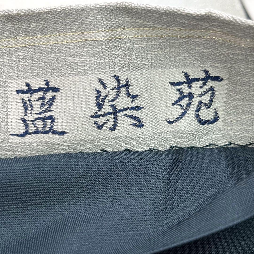 藍染苑、本藍染糸織の灰色ベースのお色に美しい本藍染の抽象柄がデザインされた素敵な柄裄のお品でございます。