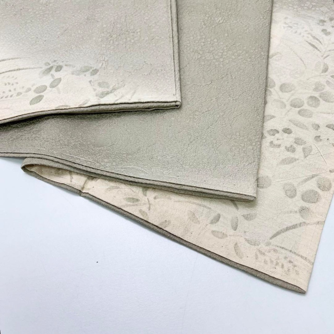 蝋色ベースのお色味に暈しの花模様、小さな丸の中に刺繍の花柄模様がデザインされた素敵なお品でございます。