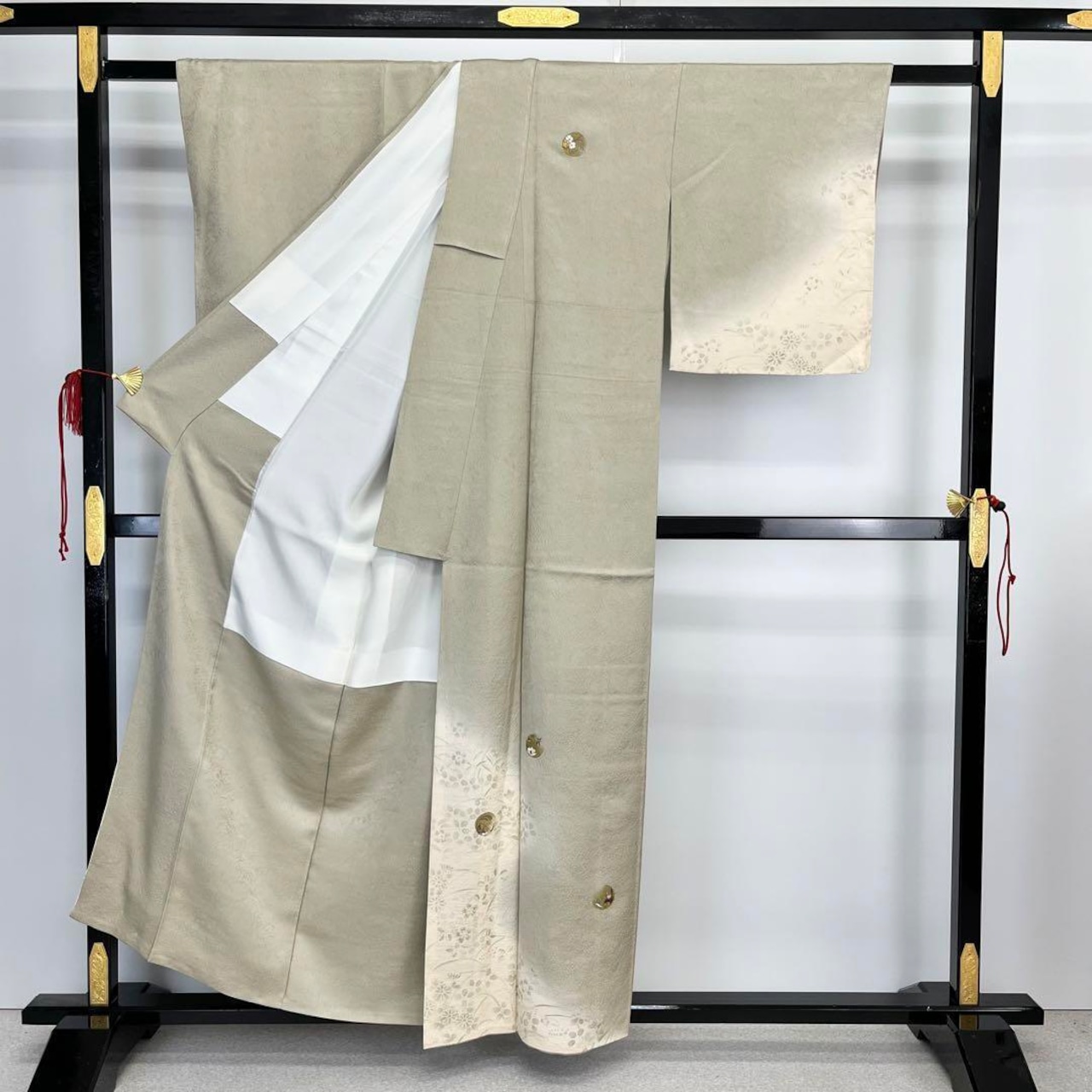 付下げ 上品な刺繍柄 丸に花模様 蝋色 しつけ糸 K-4059