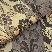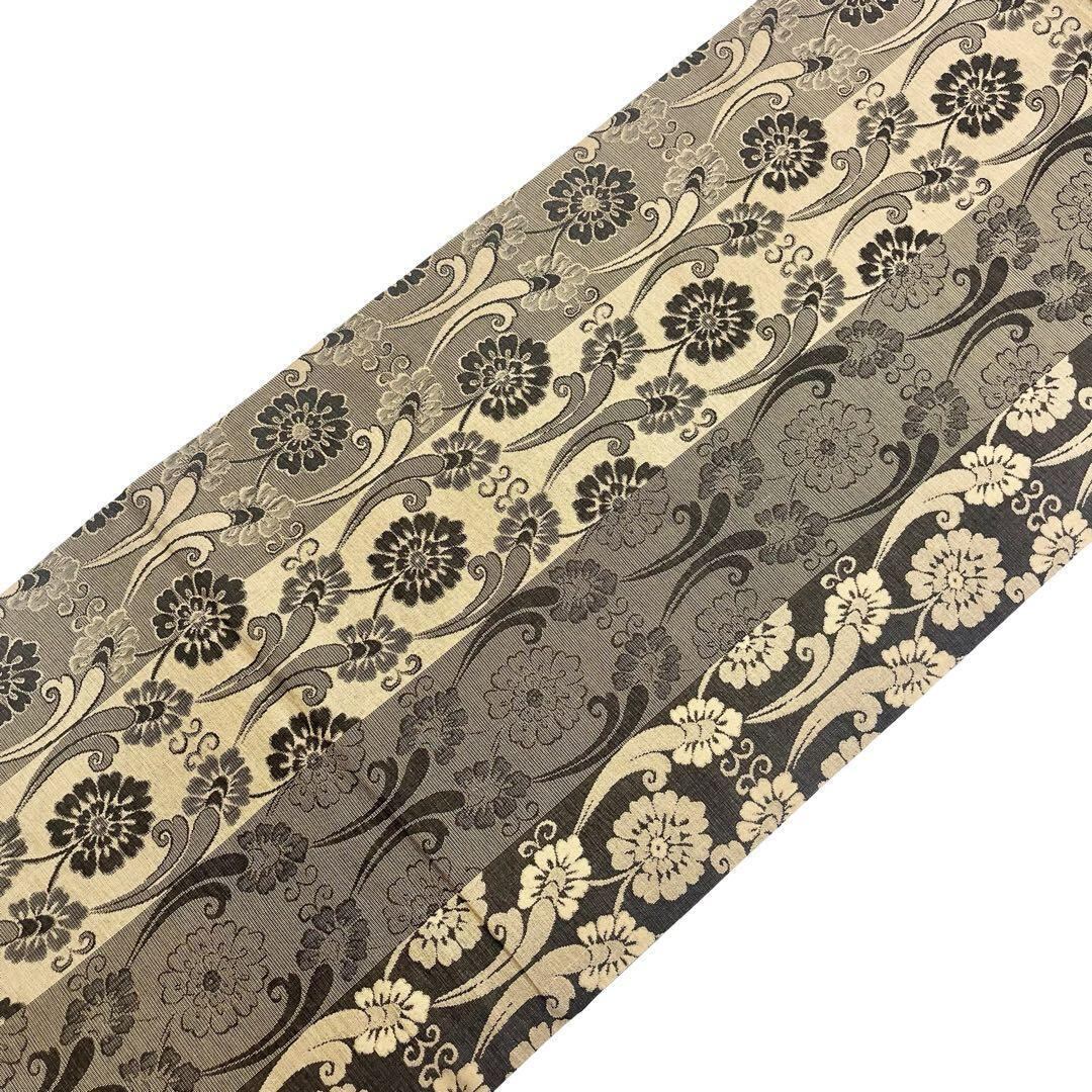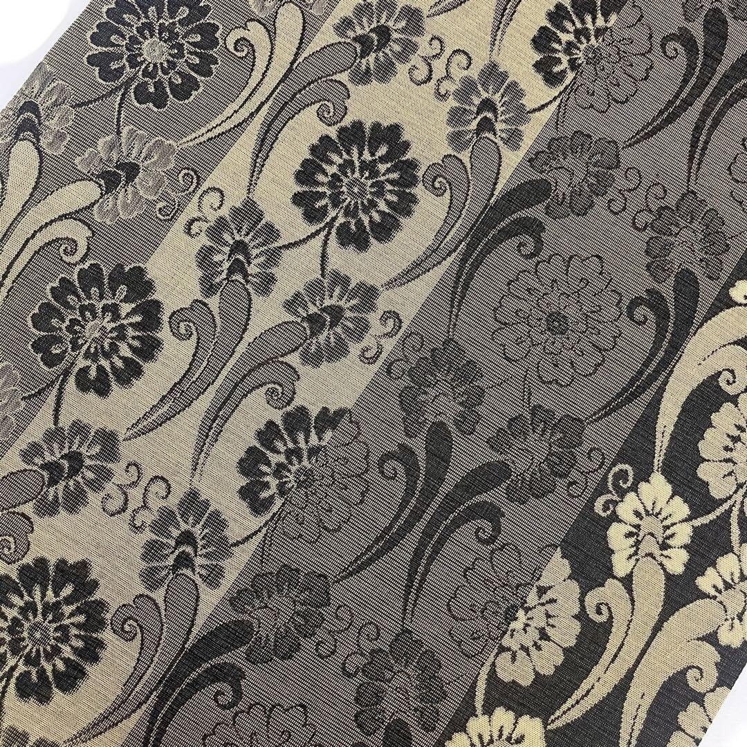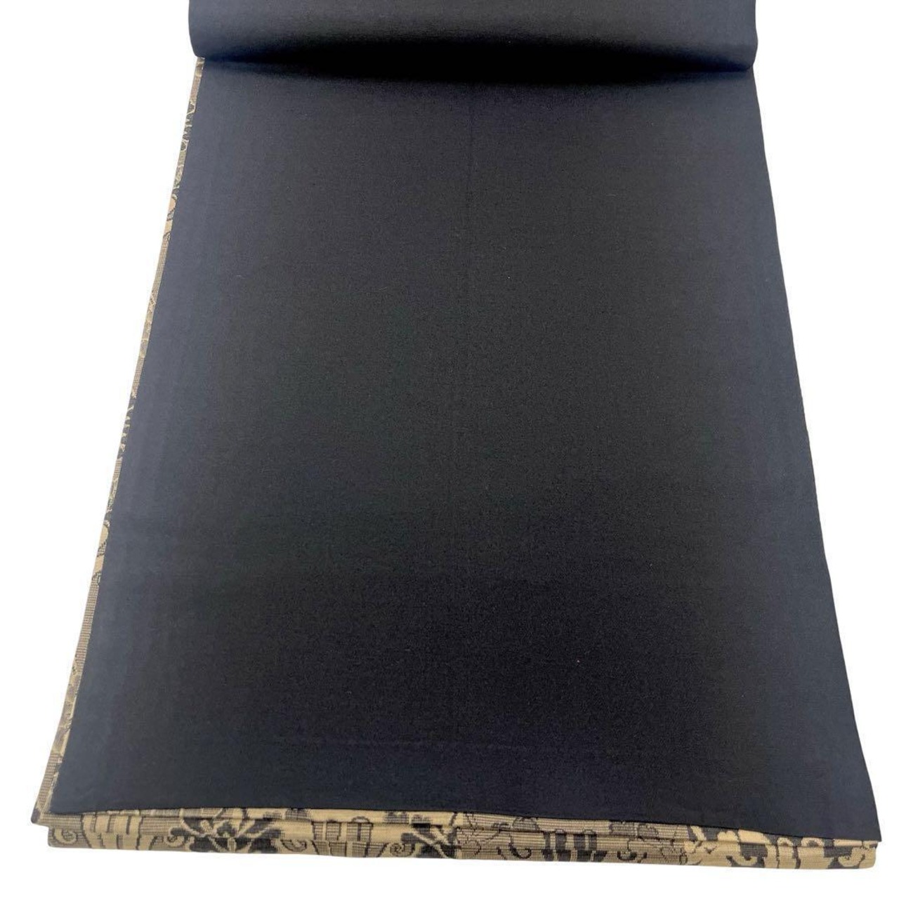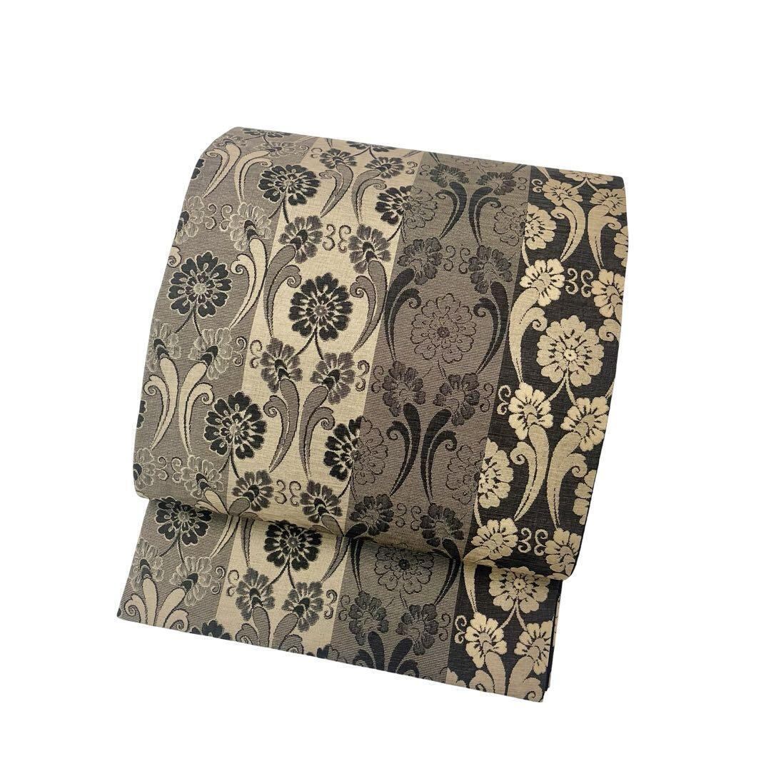 自然な風合いのお色の紬、縦縞に花柄模様がデザインされた雰囲気の良い素敵な柄裄のお品でございます。