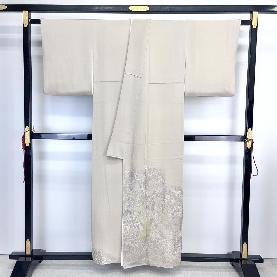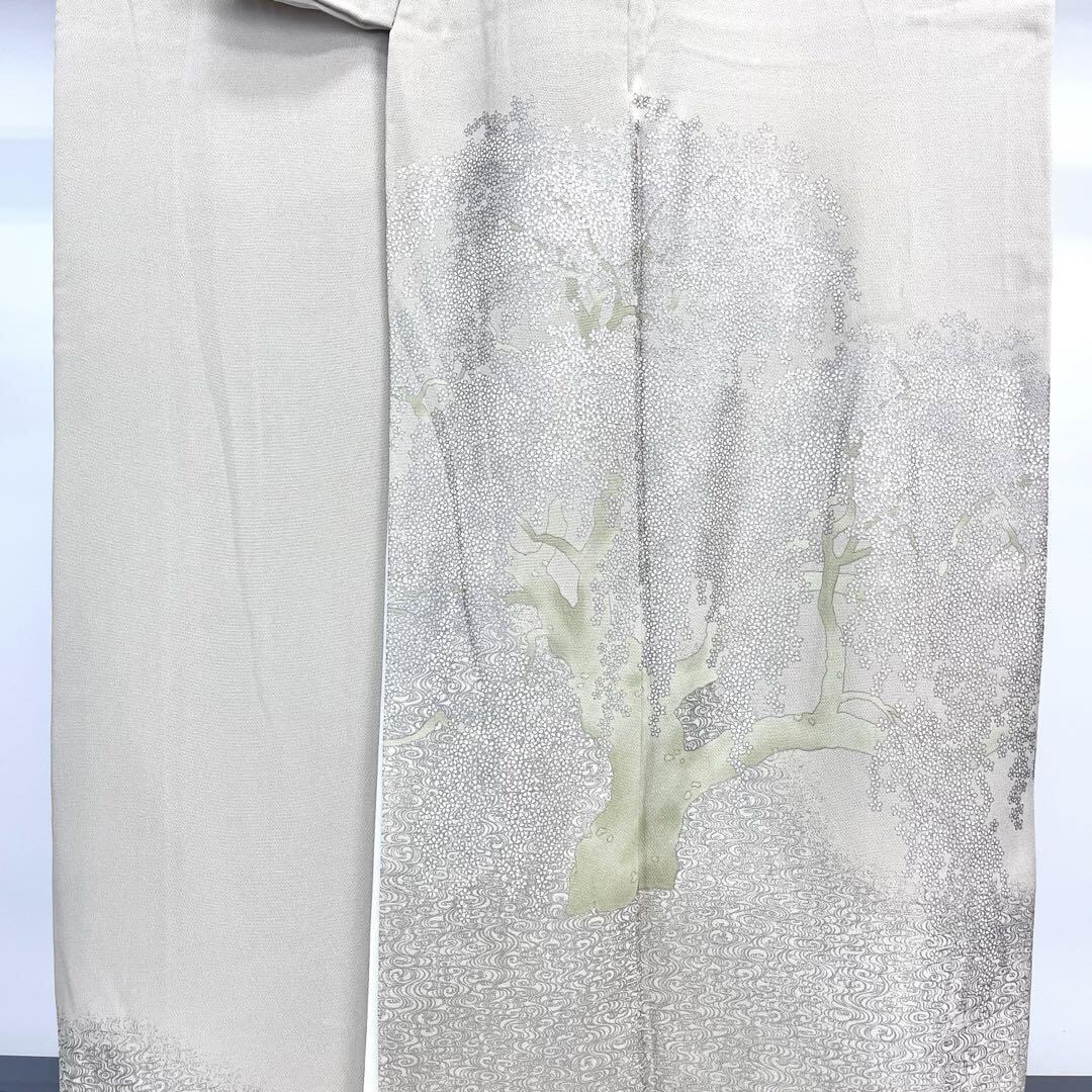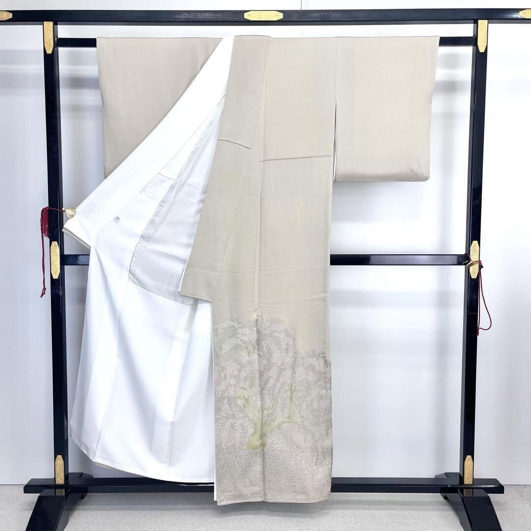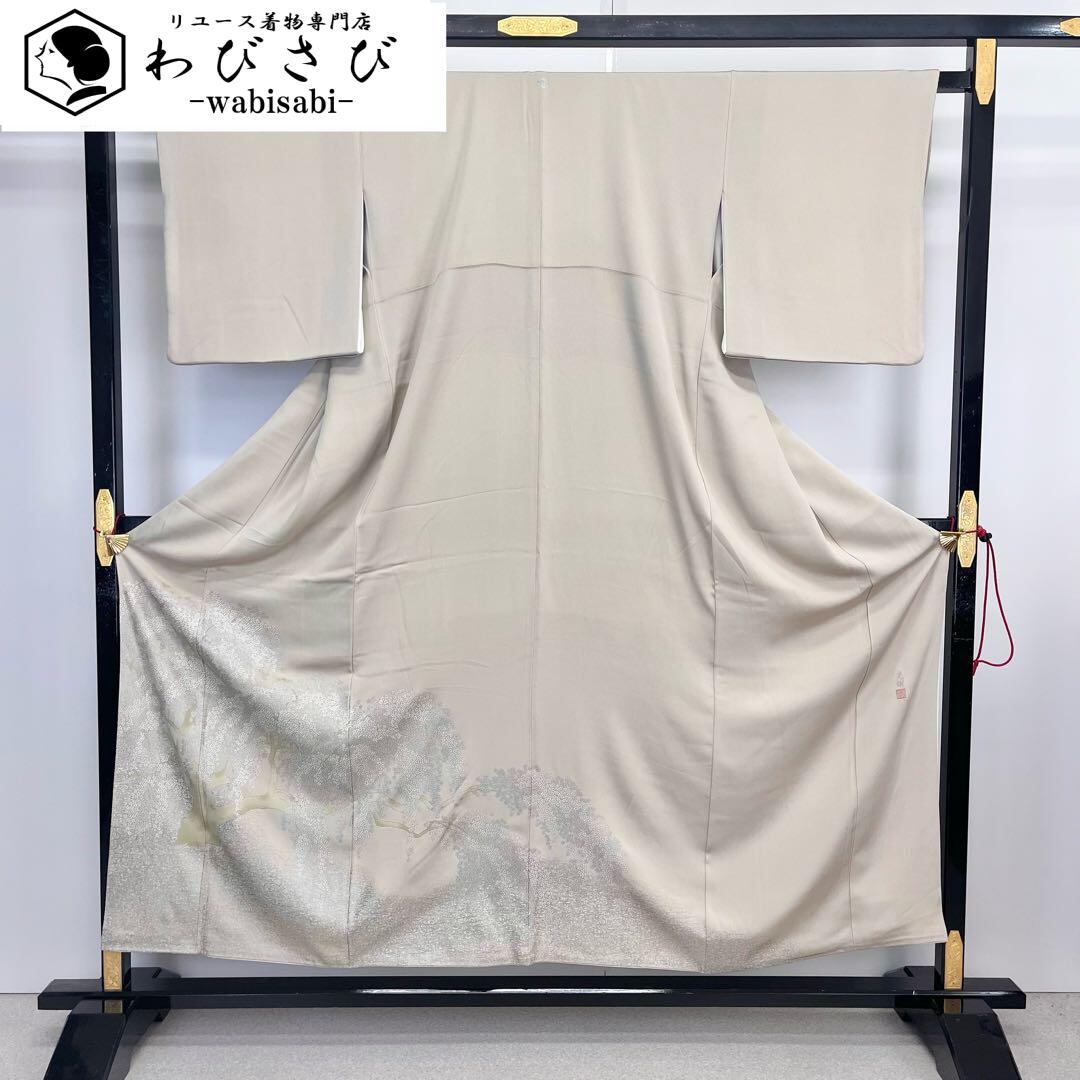 色留袖 松尾光琳 桜花図 銀彩 利休白茶色 ふくよかサイズ K-4075 着物 きもの kimono 和服 和装 中古 リサイクル着物 【送料無料】