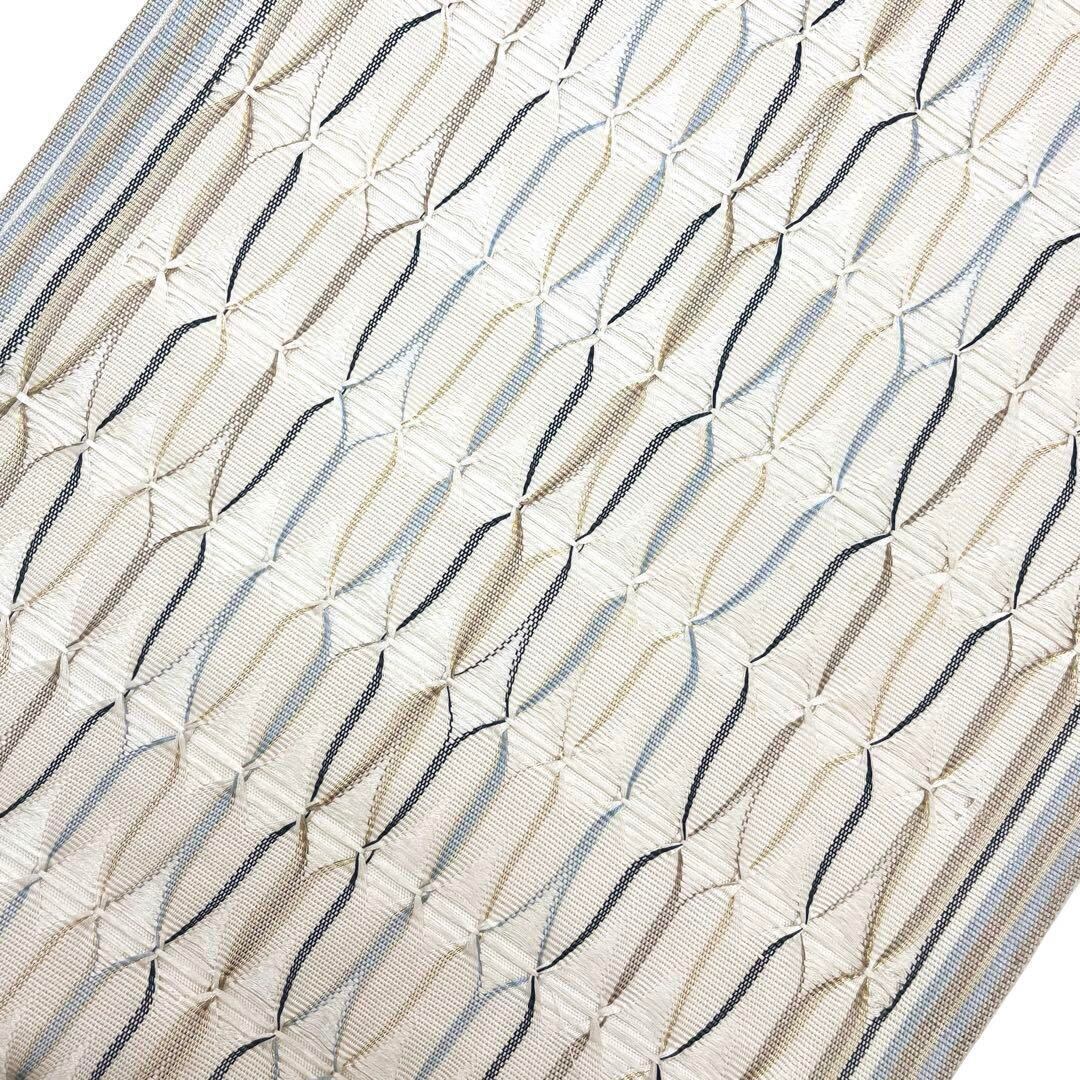 乳白色ベースの上品なお色味、美しい組み織模様がデザインされた素敵な柄裄のお品でございます。