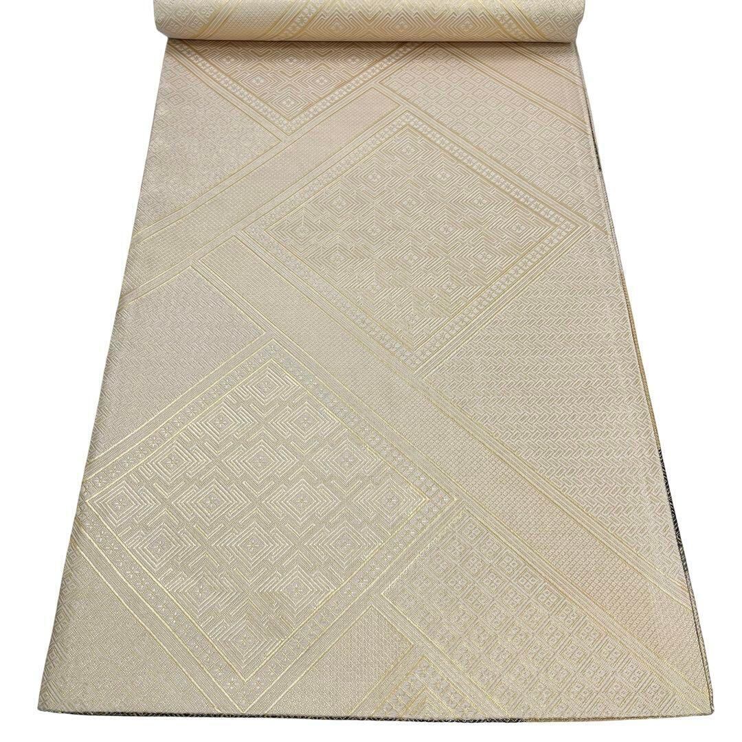 袋帯 佐賀錦 証紙付 雲取り似た様な織模様 金糸 ガード加工 O-4237