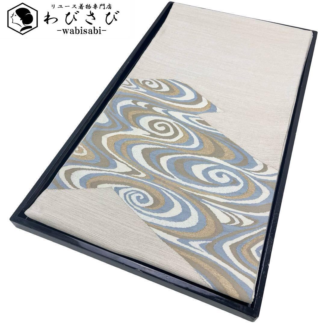 品のある象牙色のお色味に金銀糸が使われた渦模様の柄裄が素敵なお品でございます。