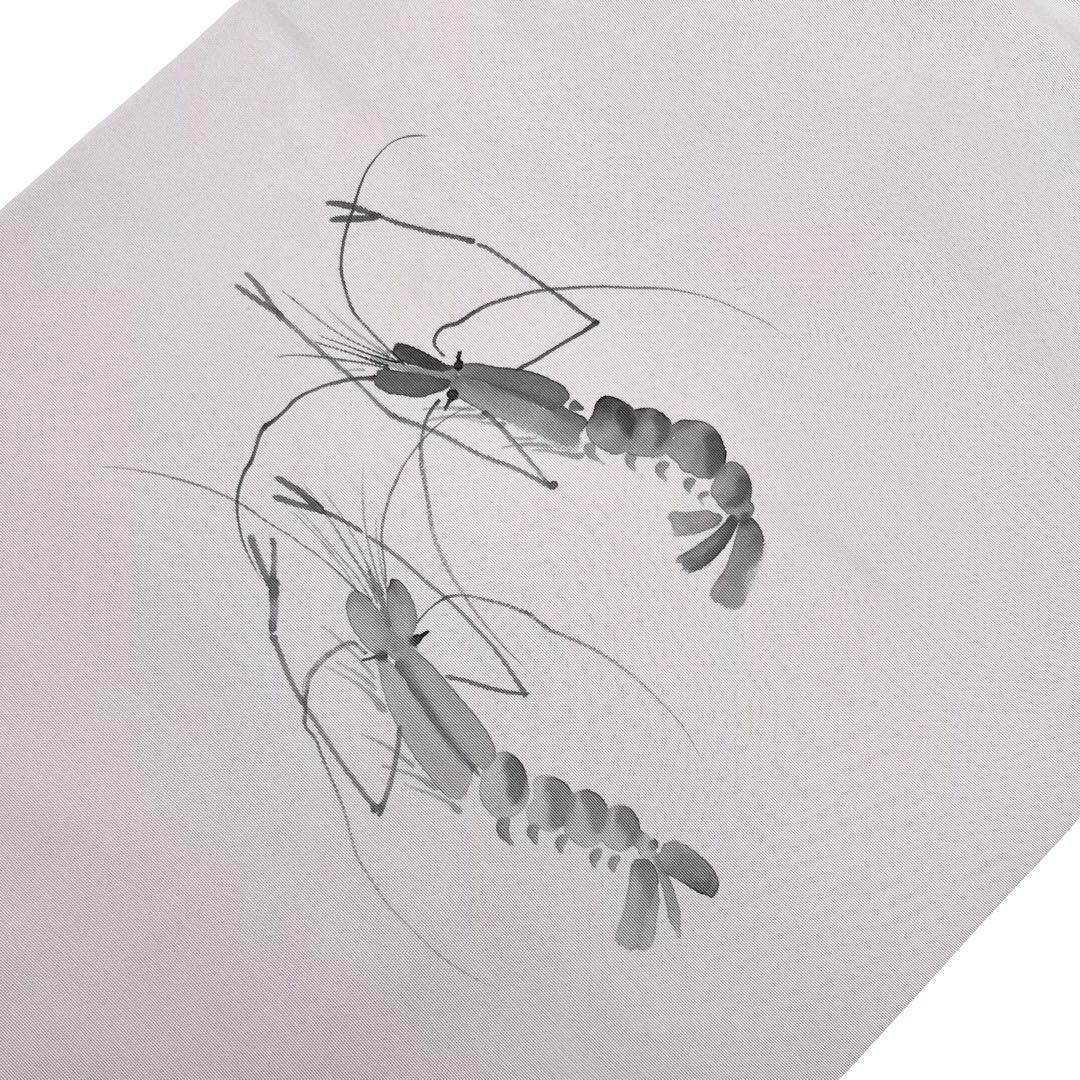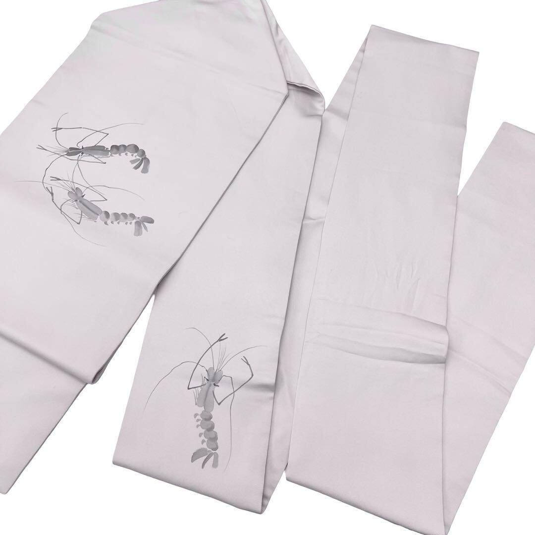 名古屋帯 作家物 塩瀬 手描き 墨描き 海老 白梅鼠色 O-4257 着物 きもの kimono 和服 和装 中古 リサイクル着物 【送料無料】