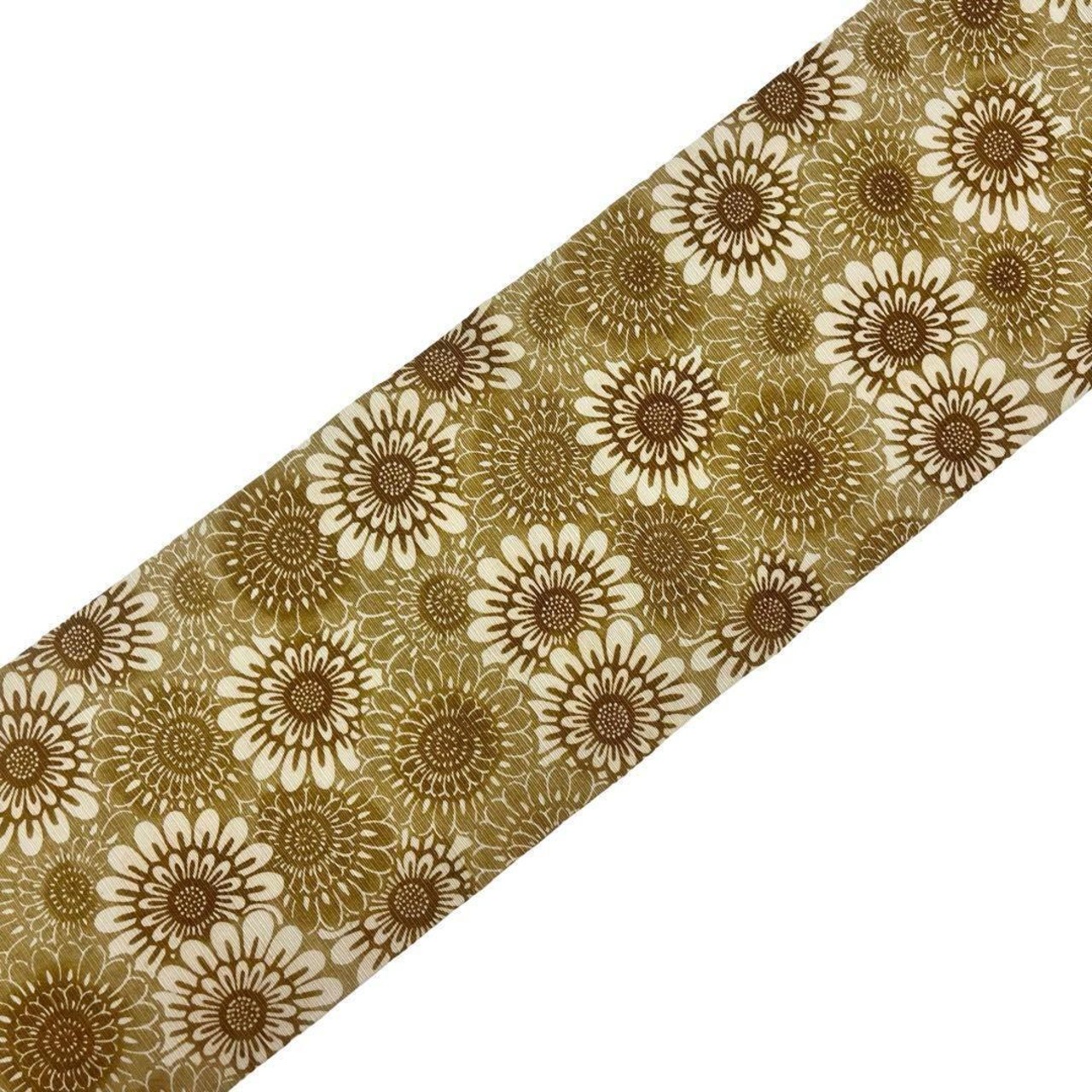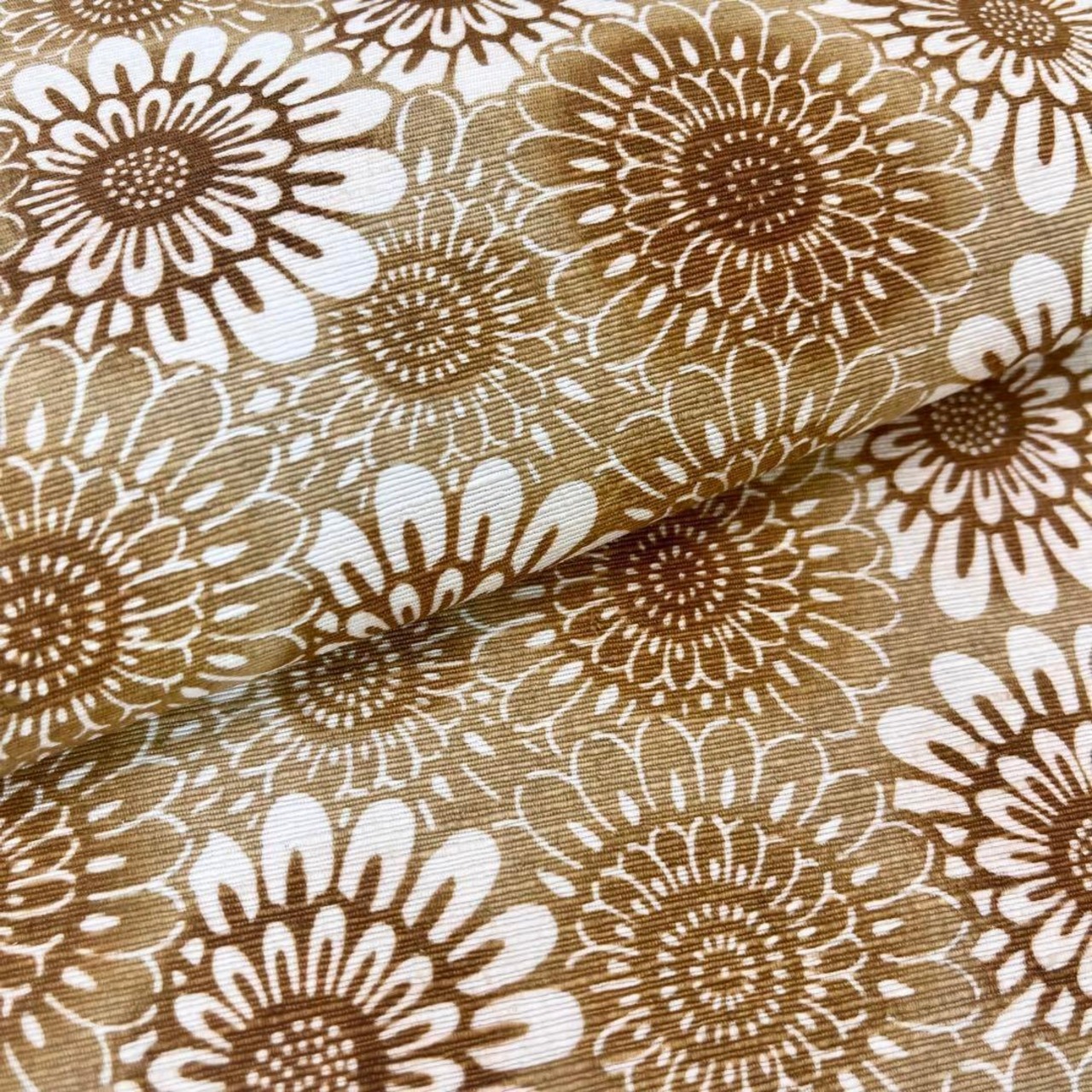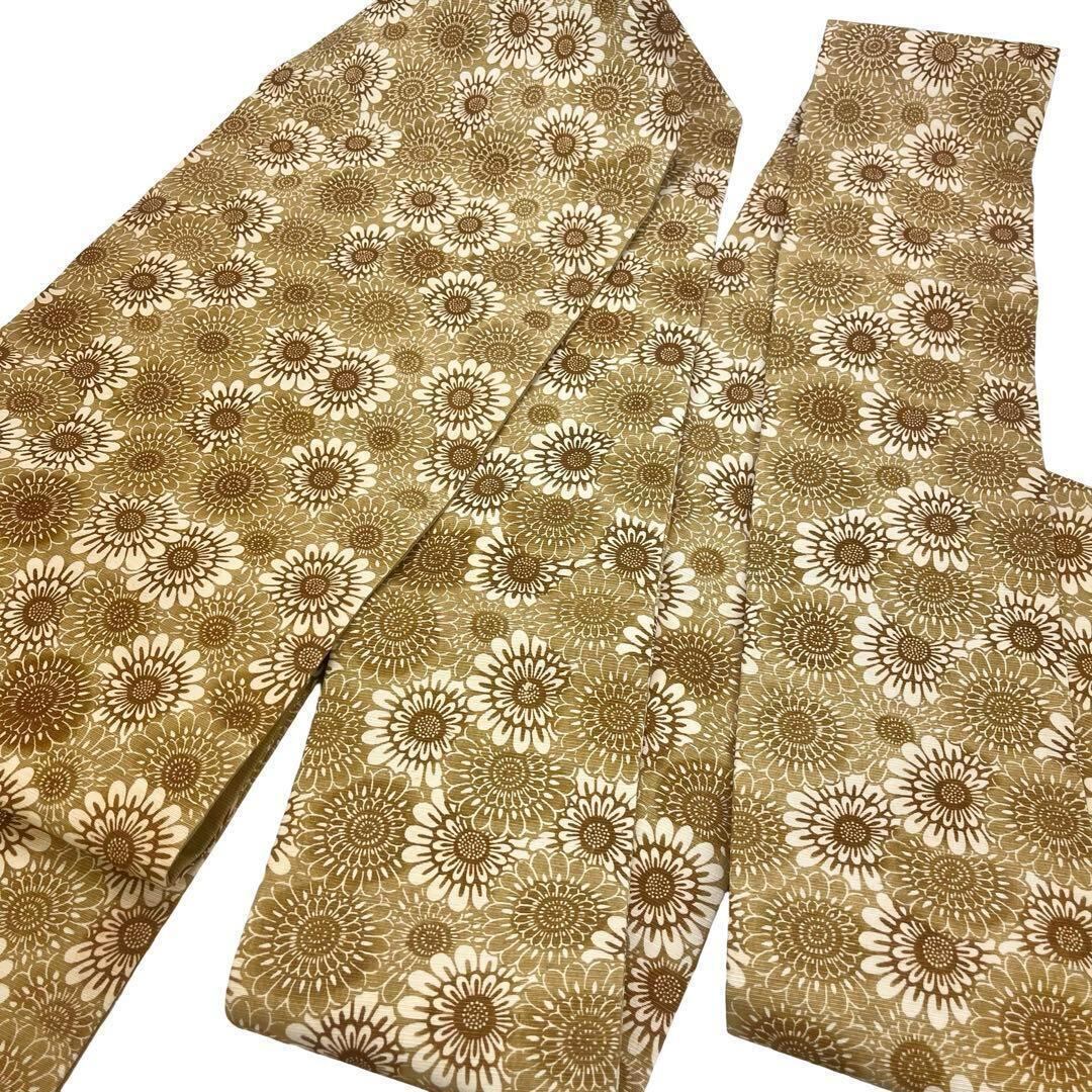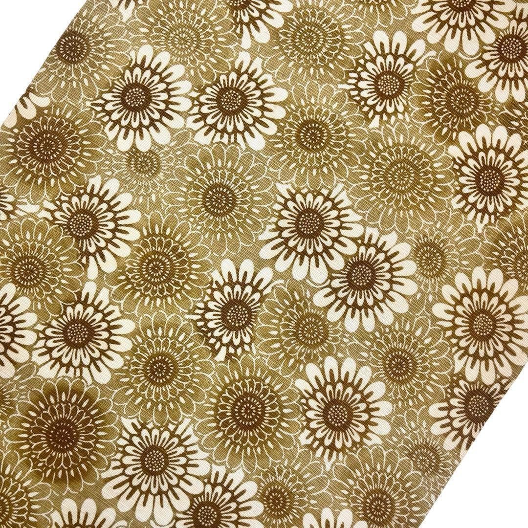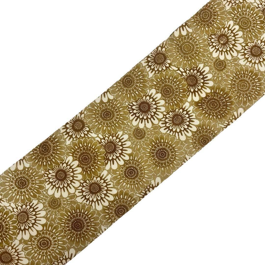 黄橡色の雰囲気の良い色彩、たくさんの向日葵の柄裄の型染でデザインされた素敵なお品でございます。