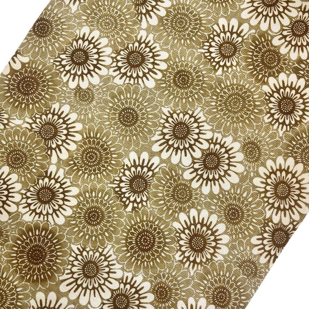 名古屋帯 型染 向日葵 ひまわり 紬 黄橡色 O-4261 着物 きもの kimono 和服 和装 中古 リサイクル着物 【送料無料】
