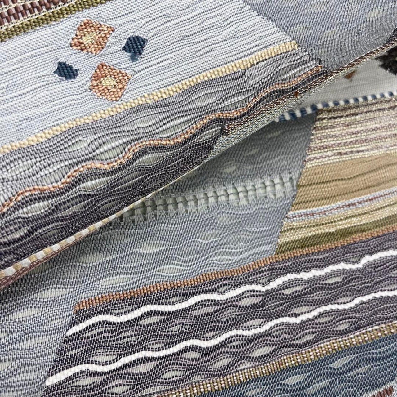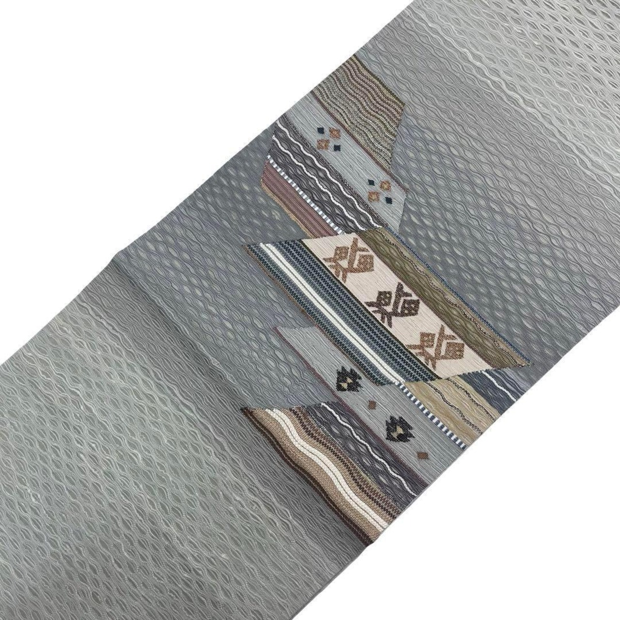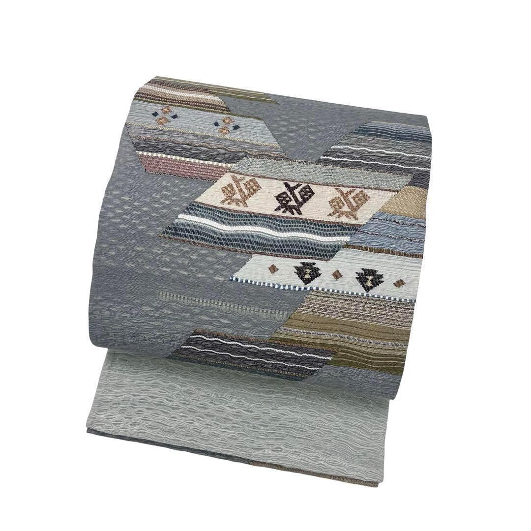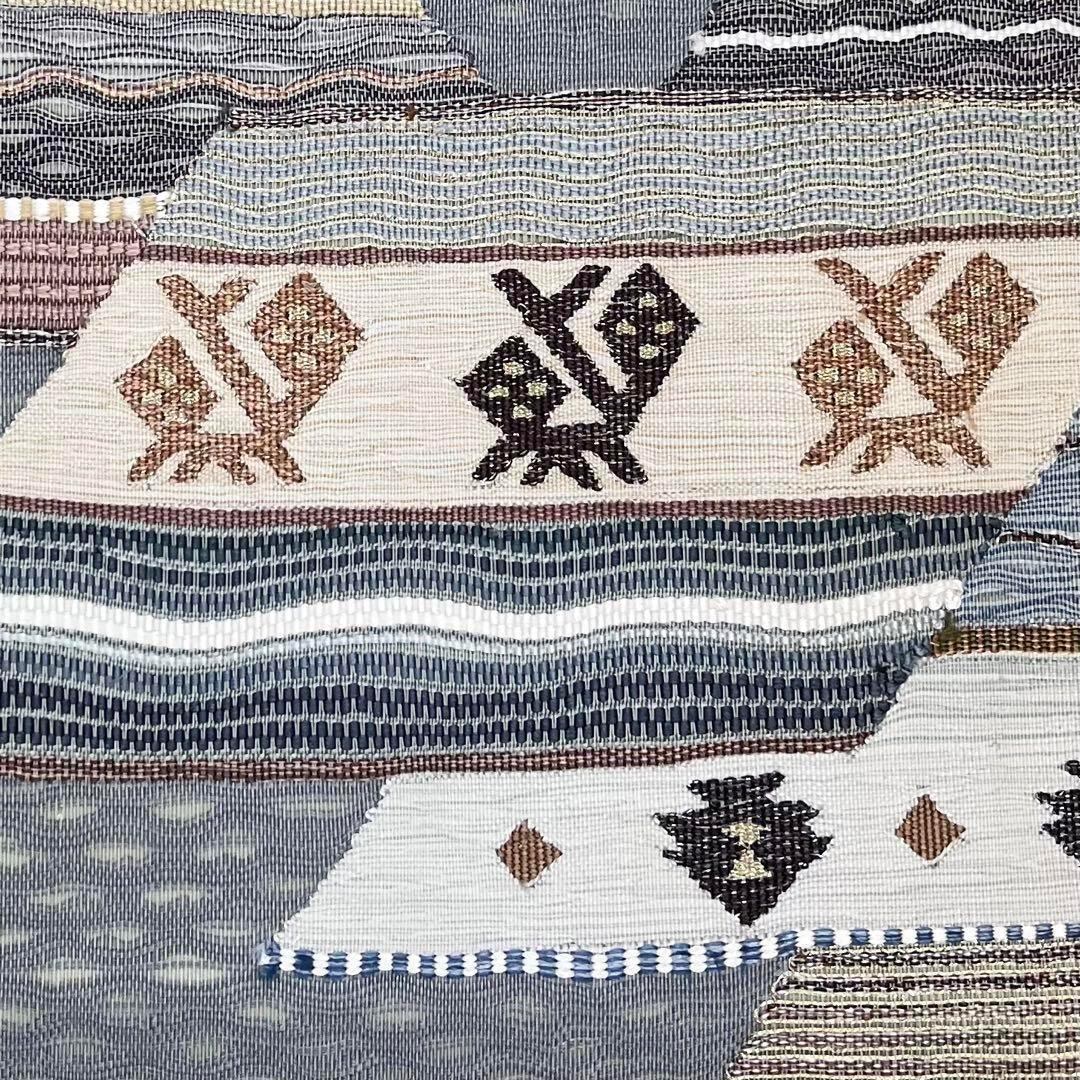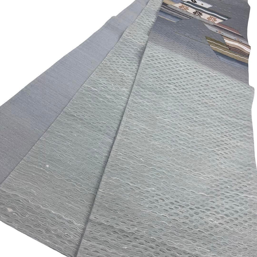 青鼠色ベースのすくい織の抽象織模様がデザインされた素敵な柄裄のお品でございます。