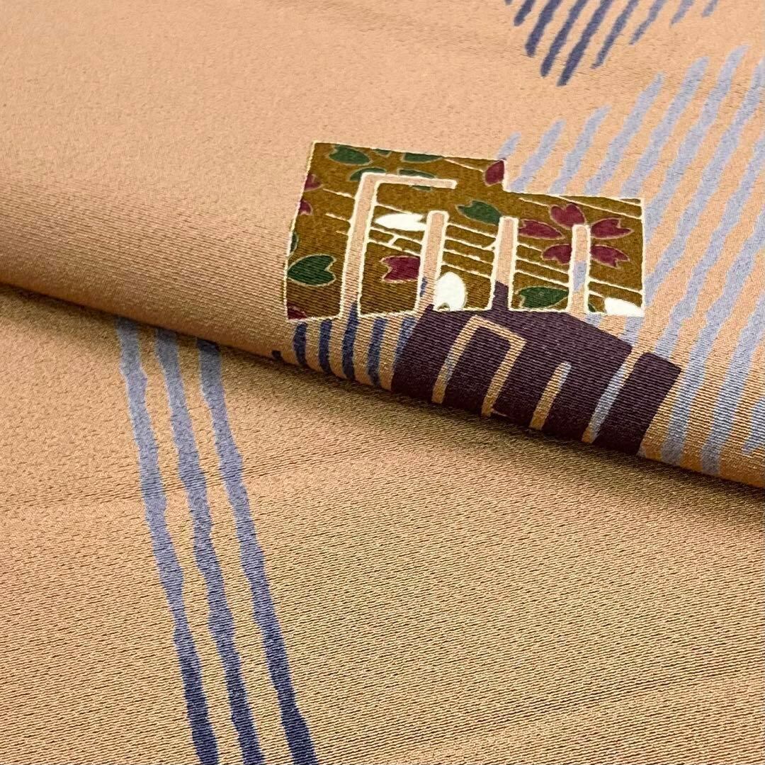 梅染色の縮緬に源氏香、桜の花柄がデザインされた上品な雰囲気の素敵な柄裄のお品でございます。