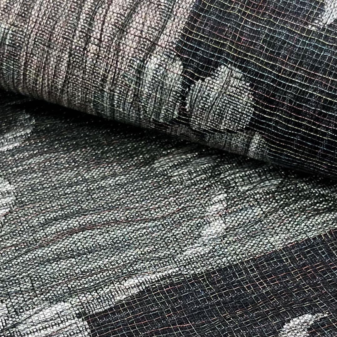 墨色ベースの落ち着きのあるお色味にモダンな雰囲気の花唐草模様がデザインされた素敵な柄裄のお品でございます。