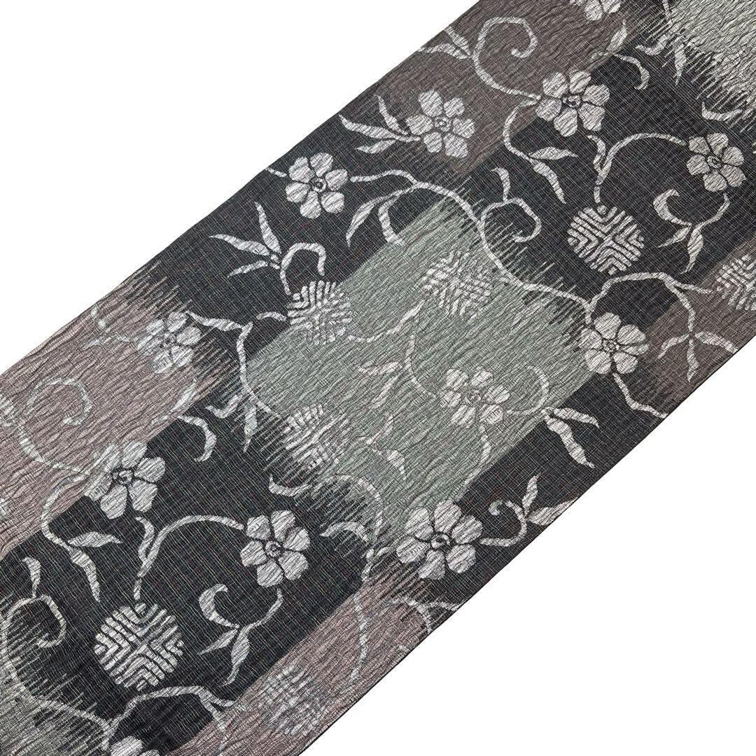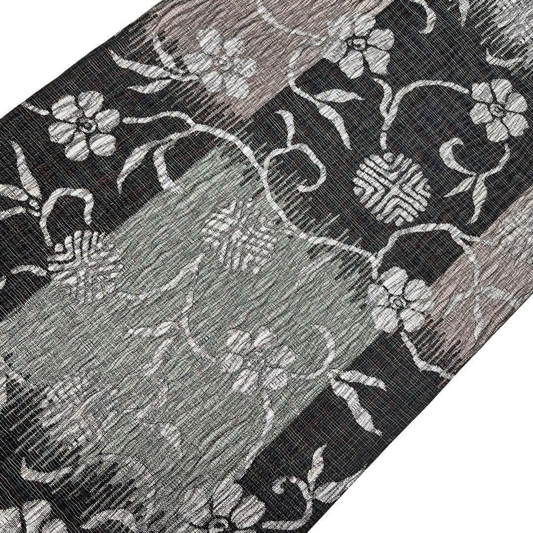 袋帯 モダンな花唐草模様 銀糸 墨色 O-4247 着物 きもの kimono 和服 和装 中古 リサイクル着物 【送料無料】