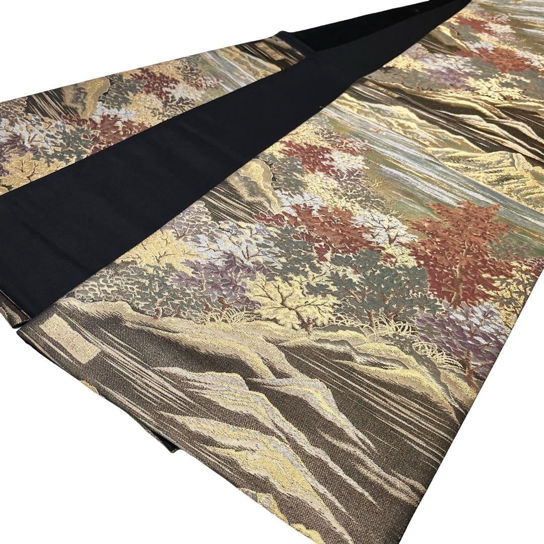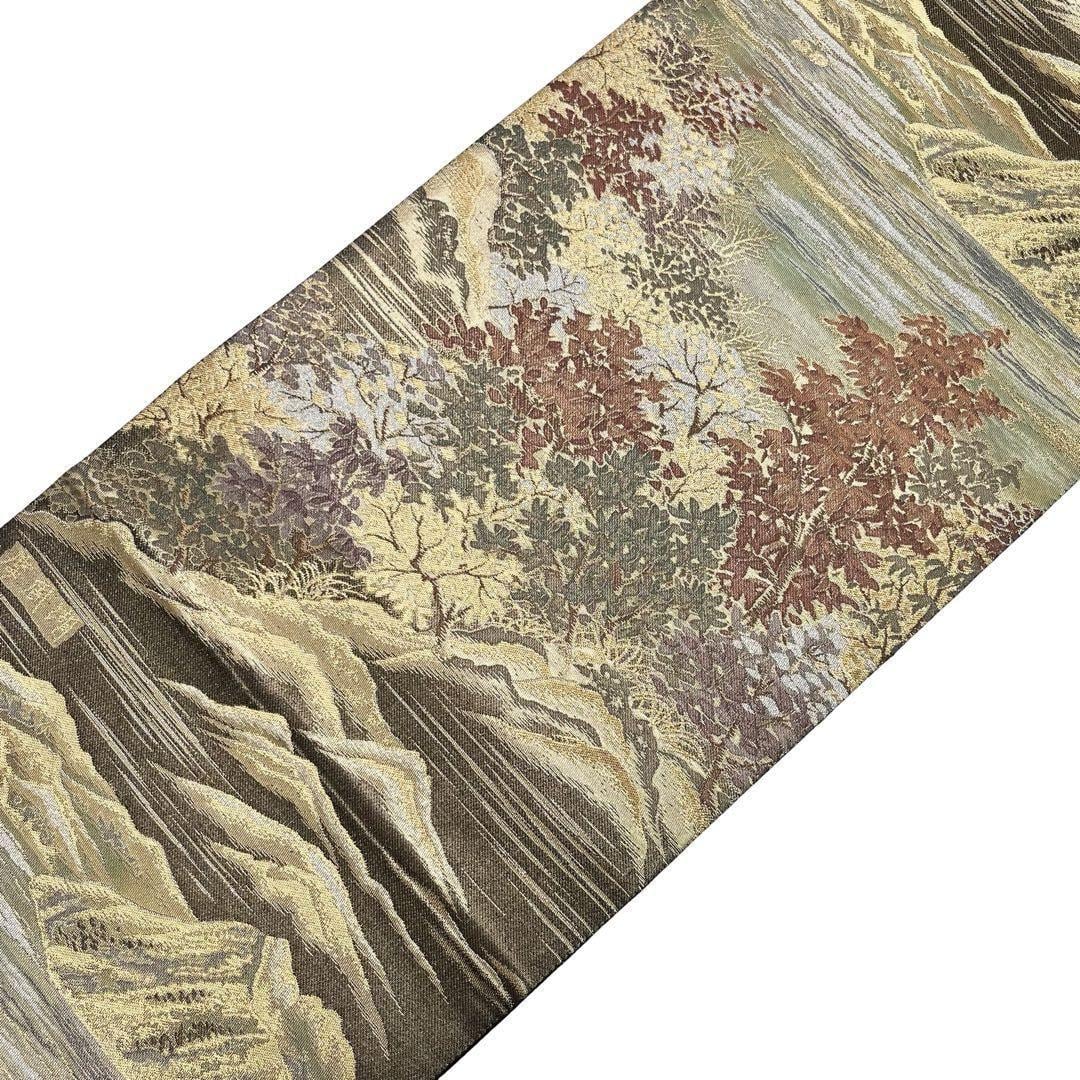袋帯 引箔日本百景 摩周湖 風景柄 金銀糸 フォーマル O-4269 着物 きもの kimono 和服 和装 中古 リサイクル着物 【送料無料】