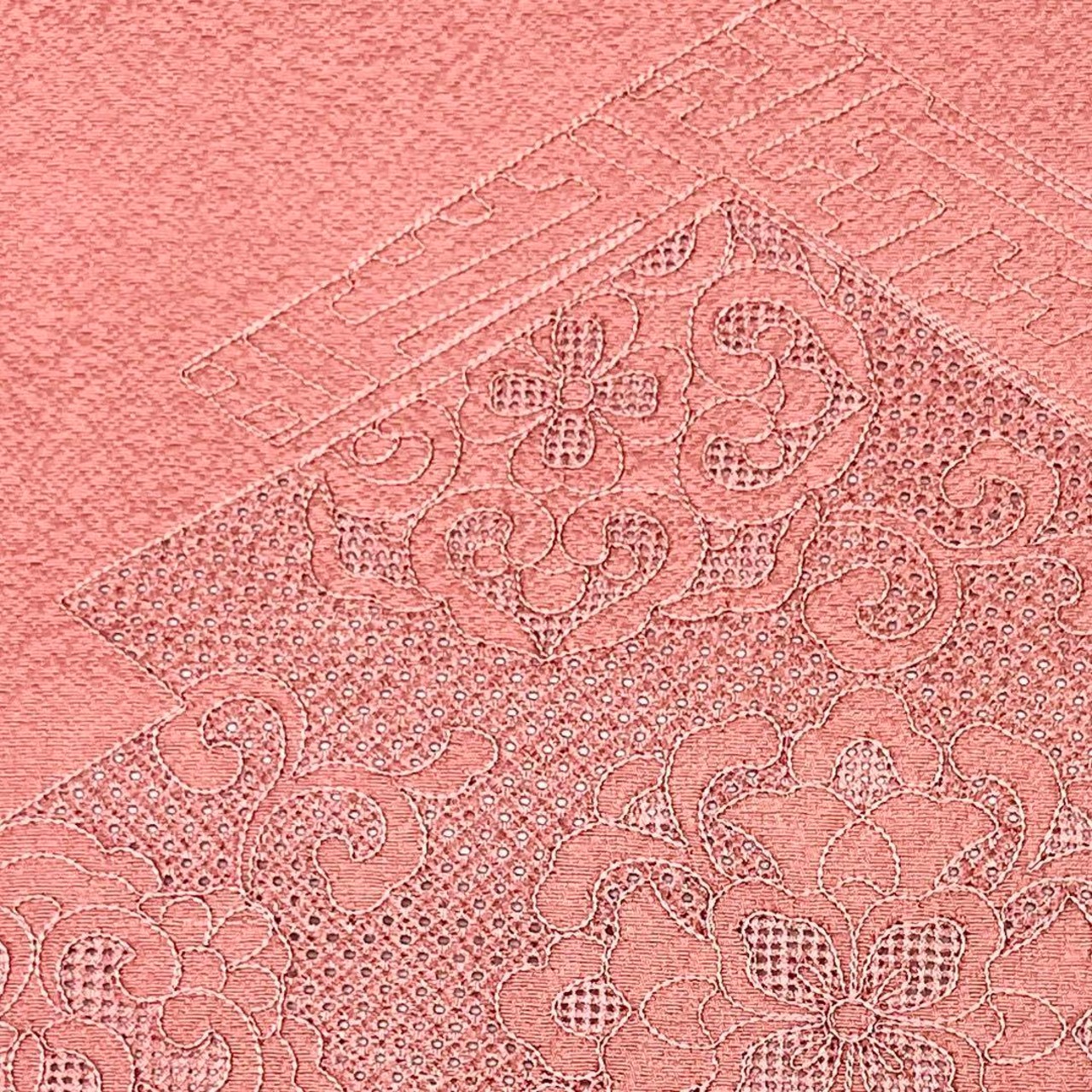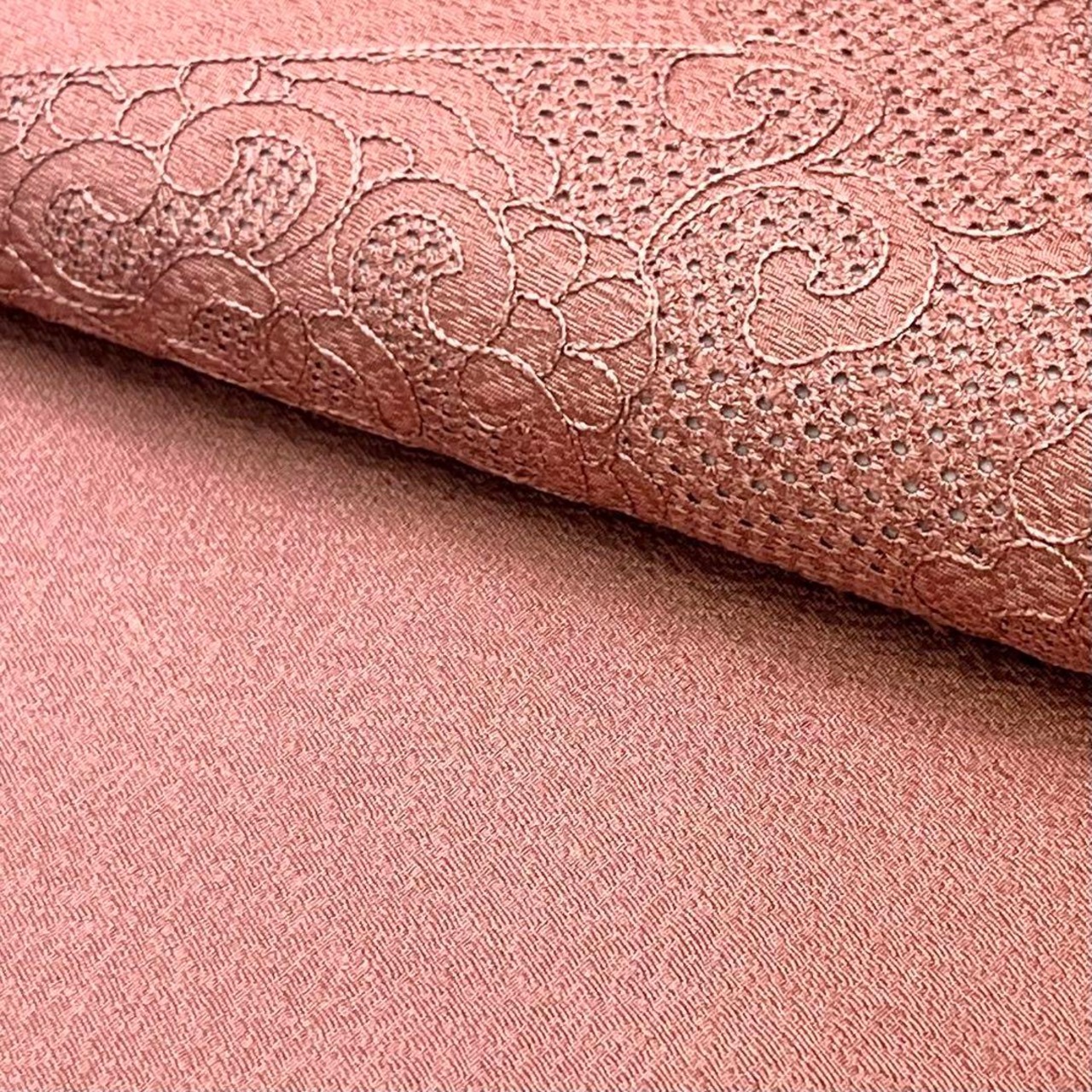 桃染色の品の良い桃色に刺繍柄、汕頭刺繍でデザインされた華柄模様がデザインされた品のある素敵なお品でございます。