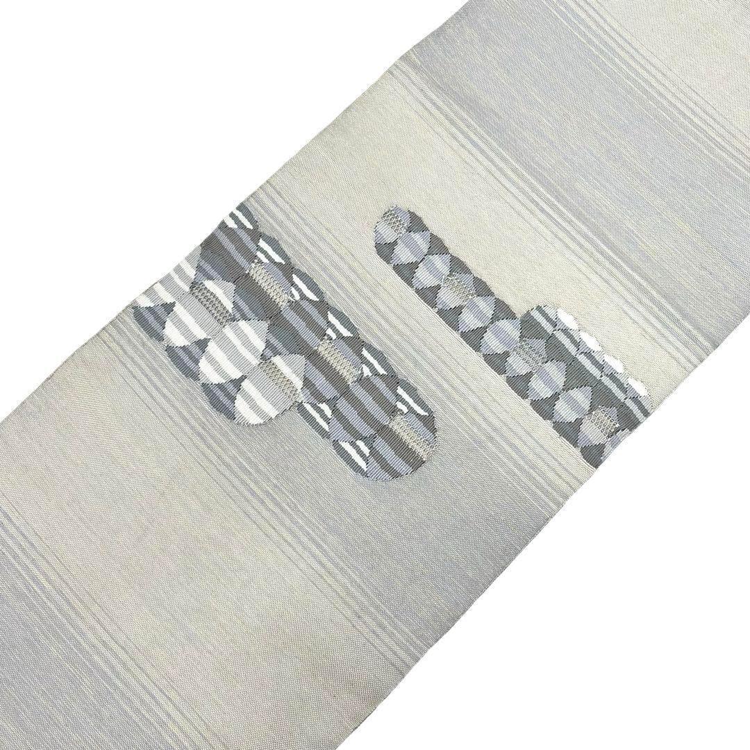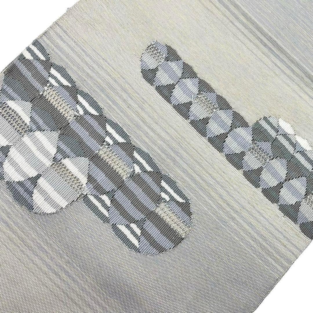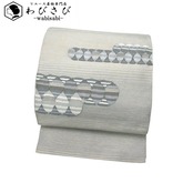 薄灰色の紬、丸模様が連なった抽象模様がデザインされた素敵な柄裄のお品でございます。