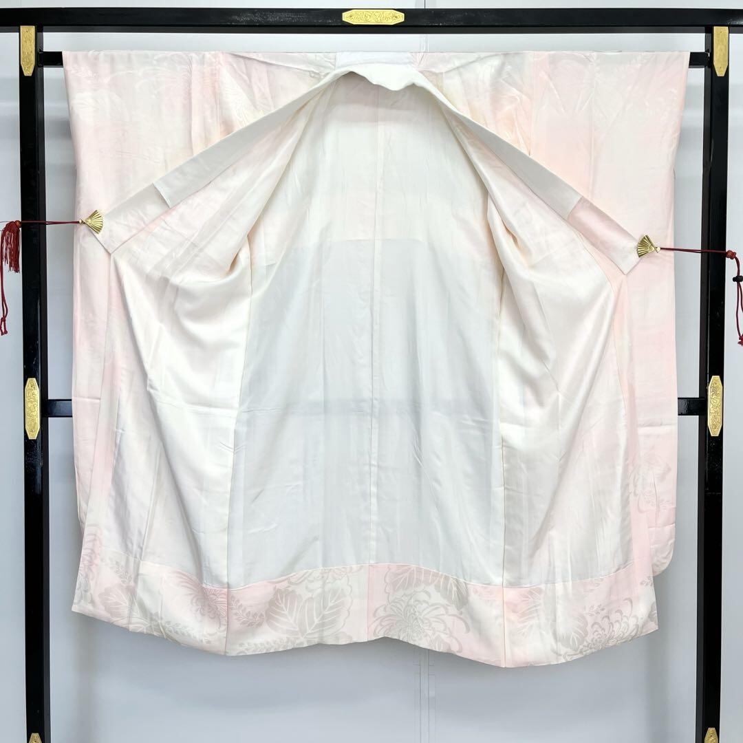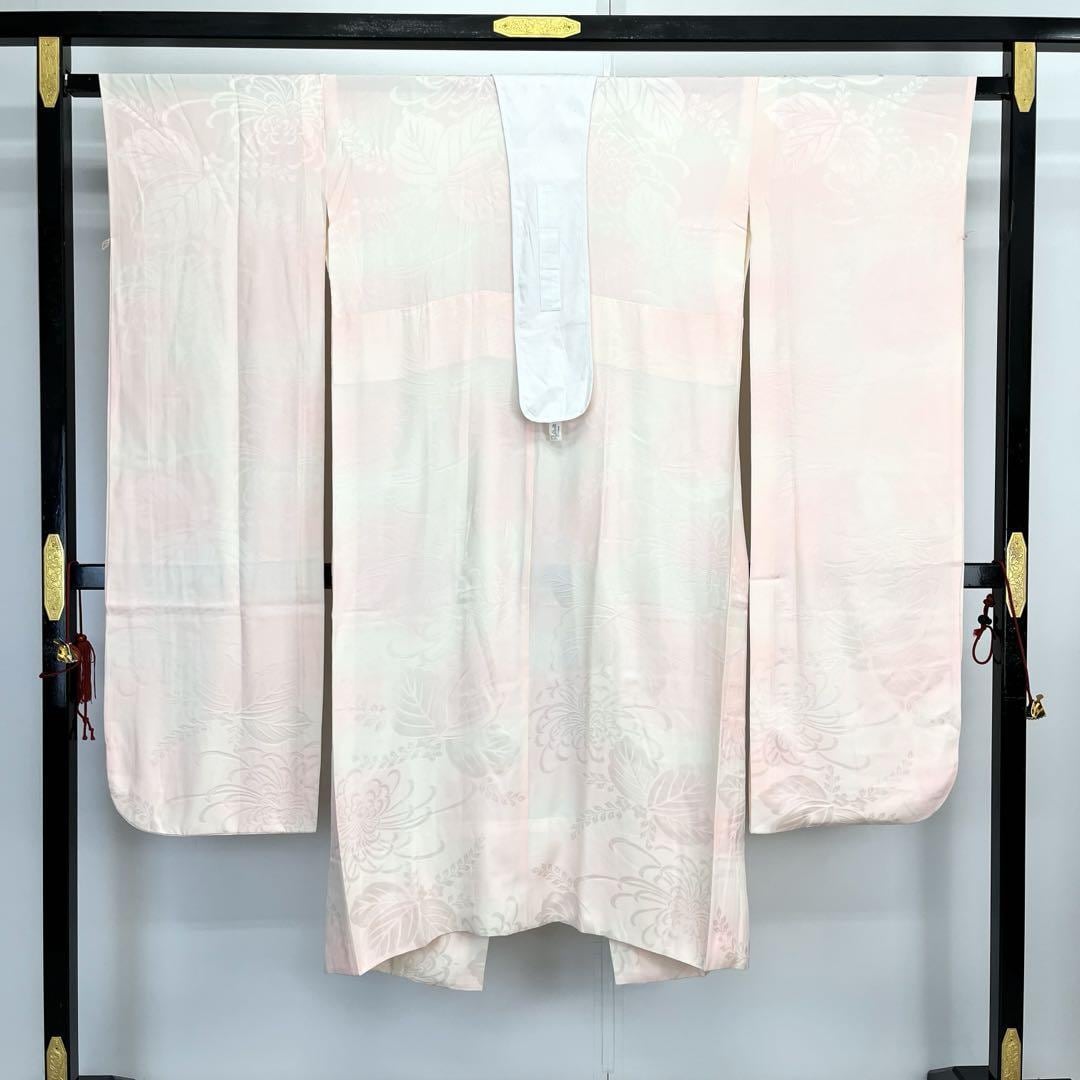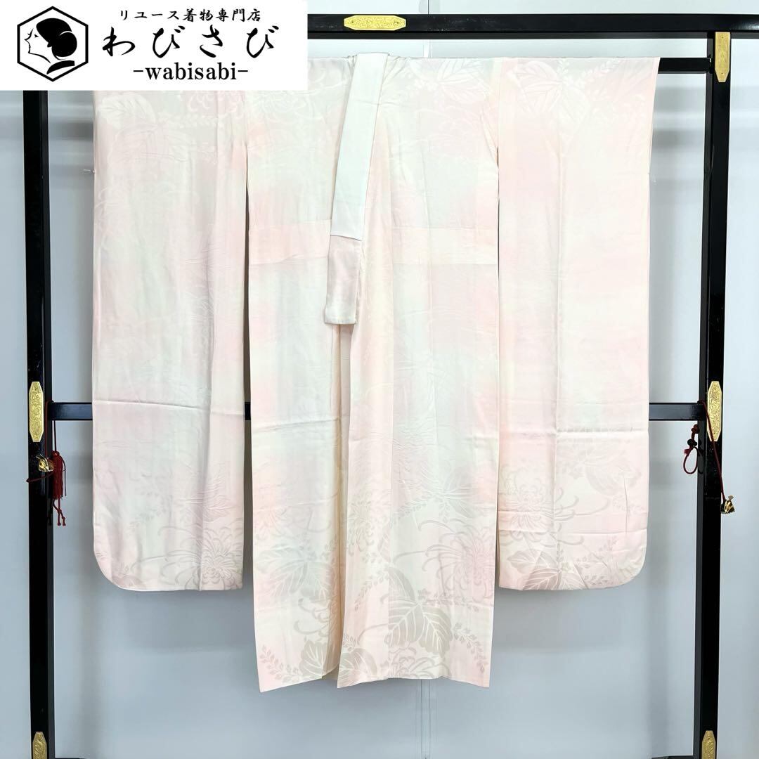 乙女色ベースの暈しに乱菊、霧の花模様がデザインされた素敵なお品でございます。