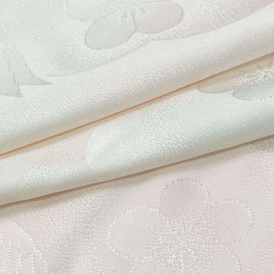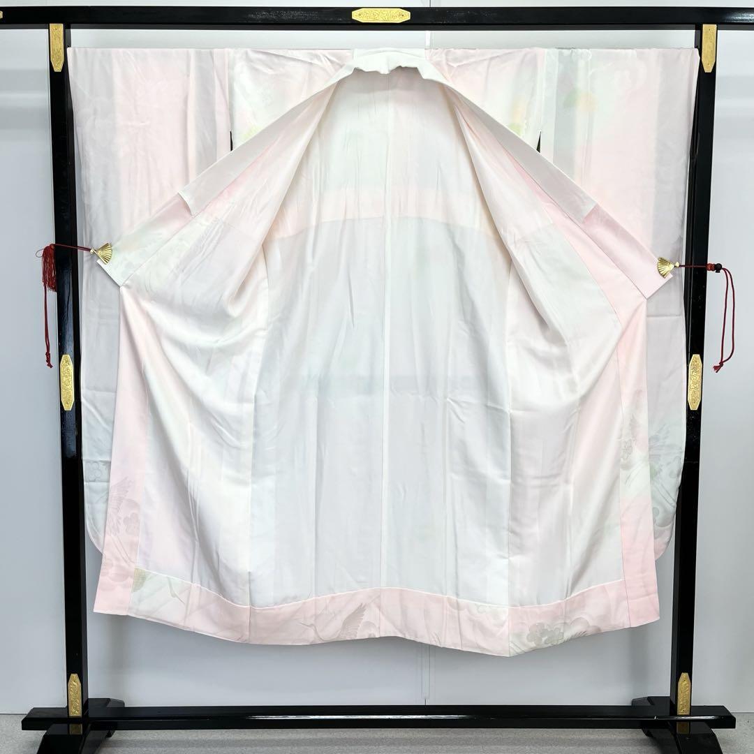 薄桃色のお色味に暈し、鶴に梅の花模様がデザインされた素敵なお品でございます。