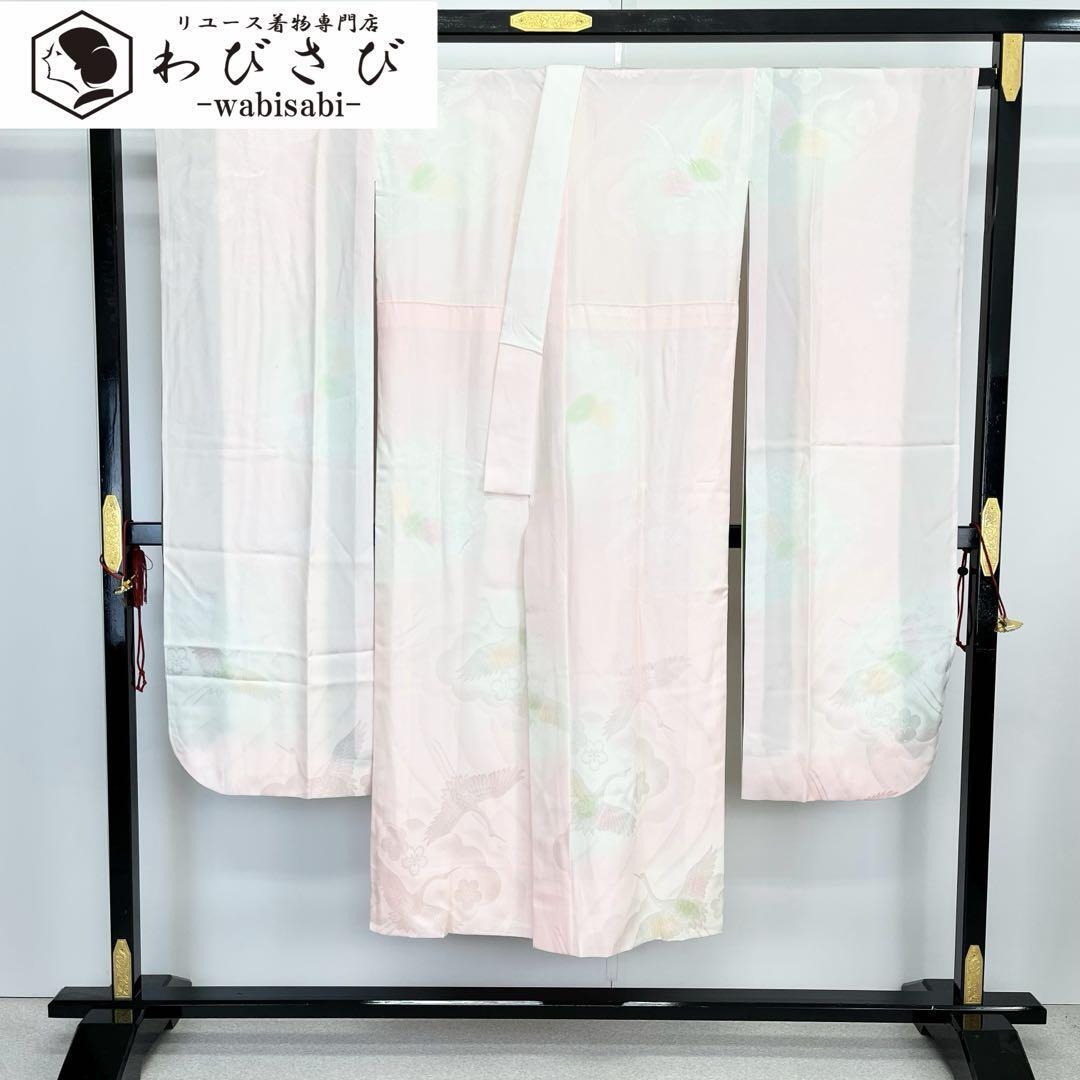 長襦袢 振袖 鶴と梅の花模様 暈し 薄桃色 J-229