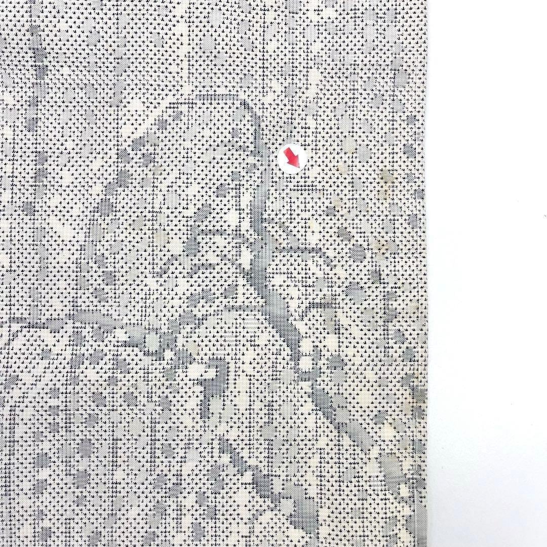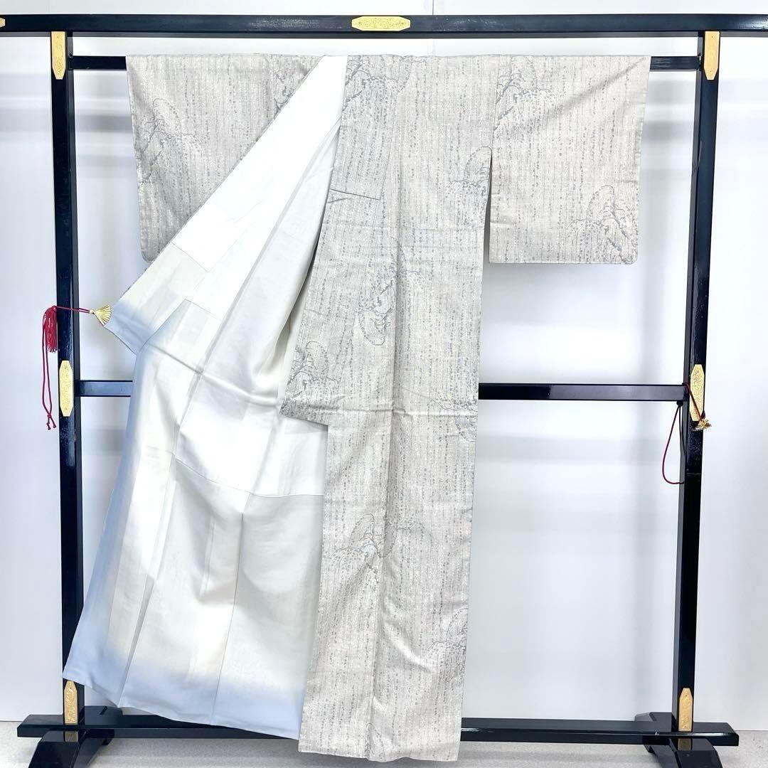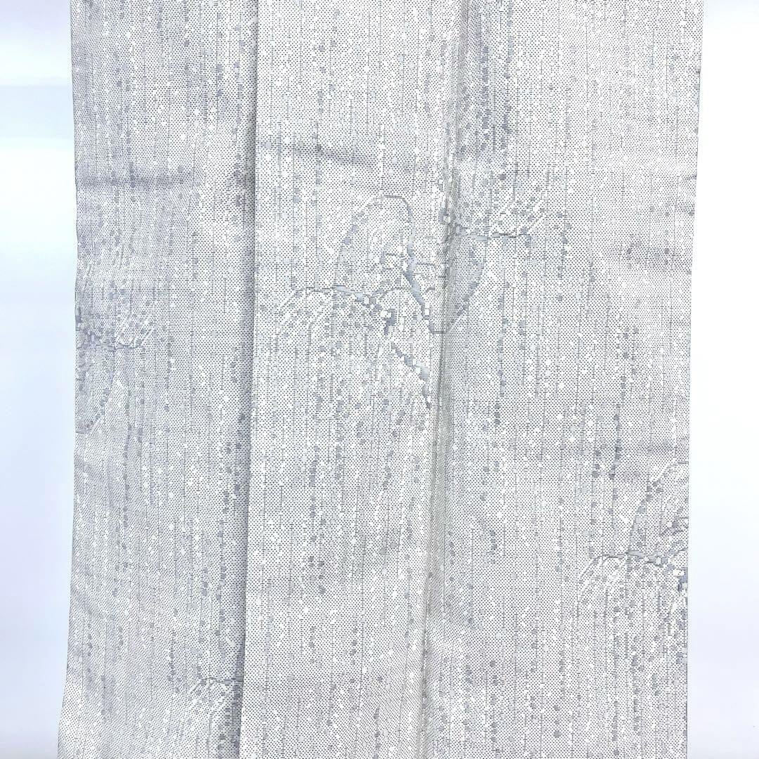 灰白色ベースの品のあるお色味に柳の木の柄裄がデザインされた素敵なお品でございます。