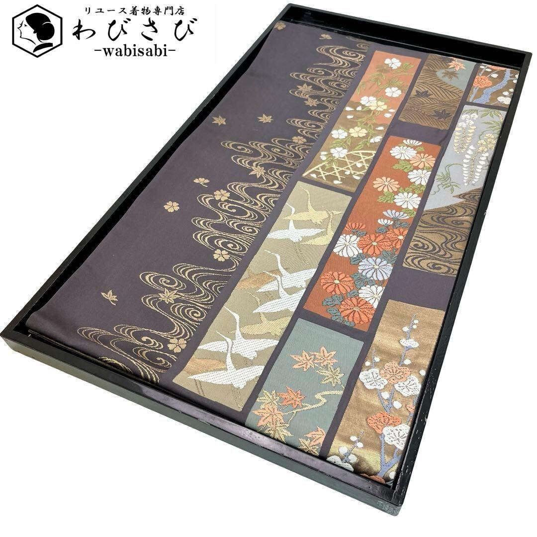 袋帯 唐織名錦遺芳 縦柄花模様 鶴 流水 紫烏色 金糸 O-4281 着物 きもの kimono 和服 和装 中古 リサイクル着物 【送料無料】
