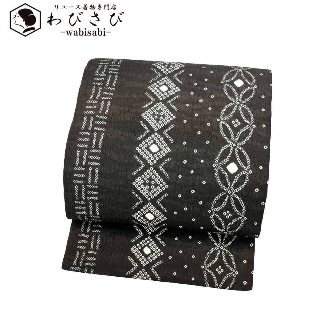 名古屋帯 絞り柄 七宝 菱模様 縮緬 涅色 O-4280