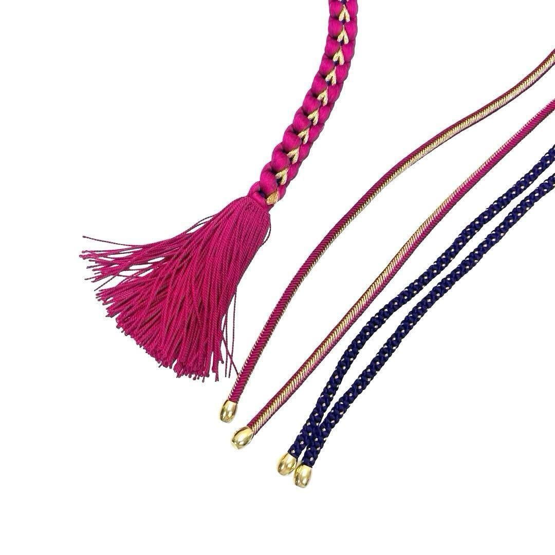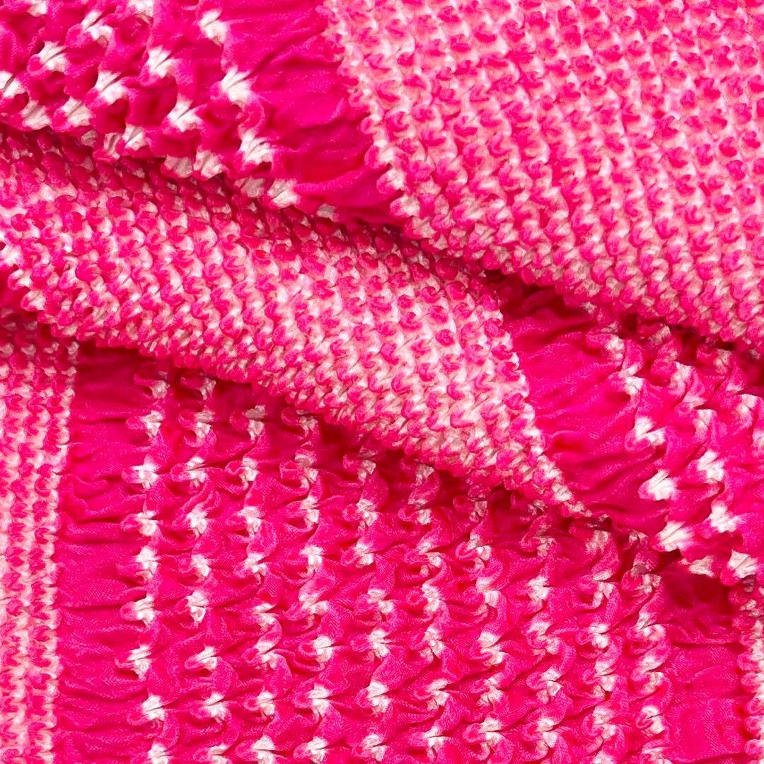 ストライプ柄のピンクの総絞りの帯揚げ、組紐の飾りが可愛い帯締めのセットのお品でございます。
