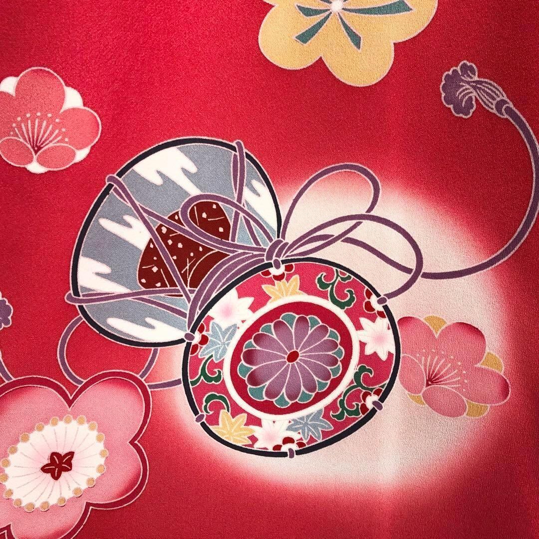 手毬、鼓に花模様の柄裄がデザインされた素敵なお品でございます。