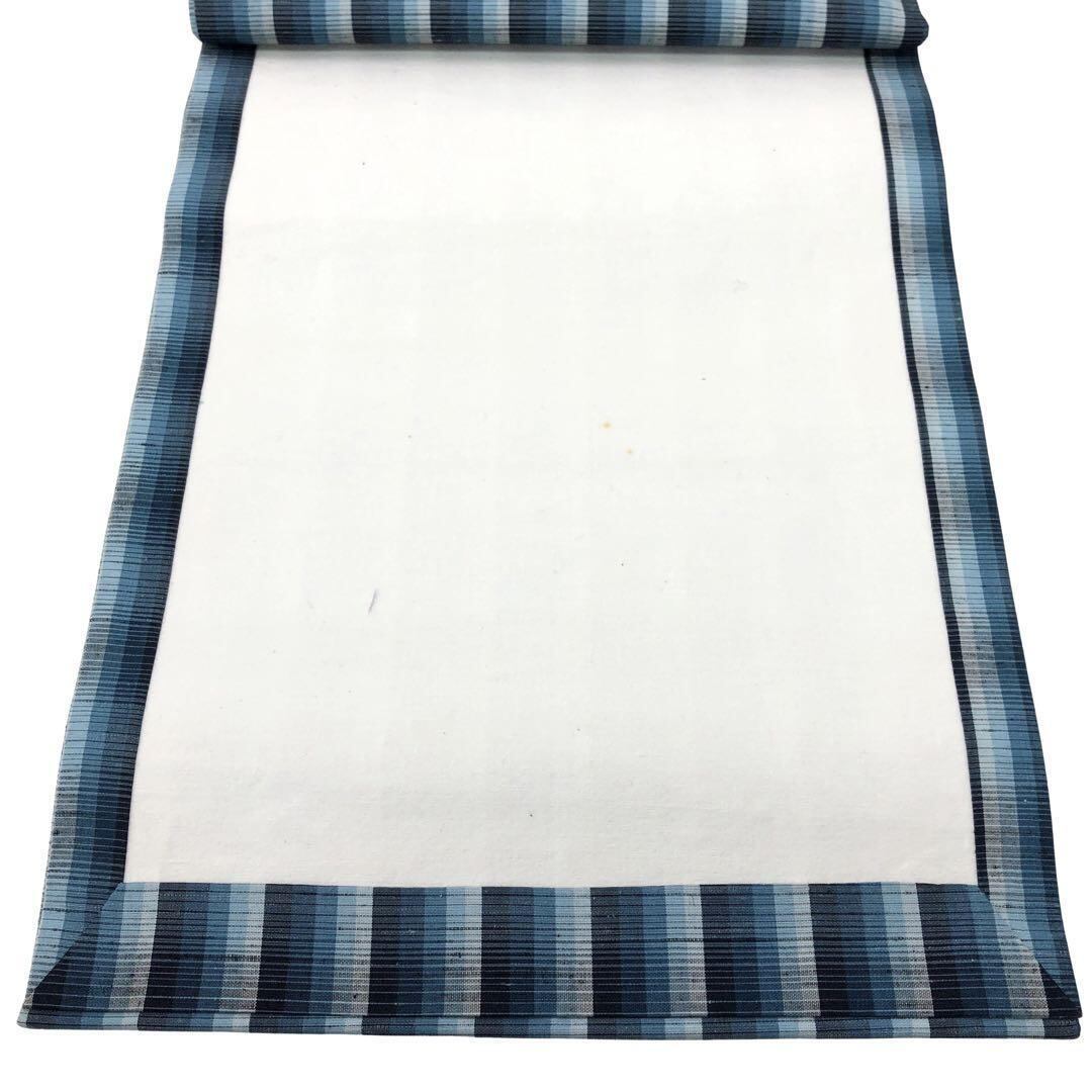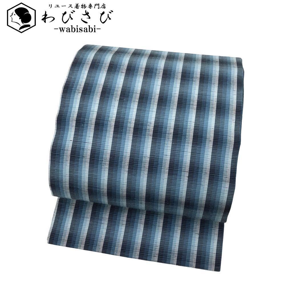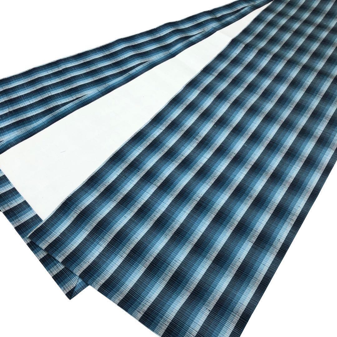 雰囲気の良い青味のグラデーションが美しい紬、縦縞模様の柄裄の素敵なお品でございます。